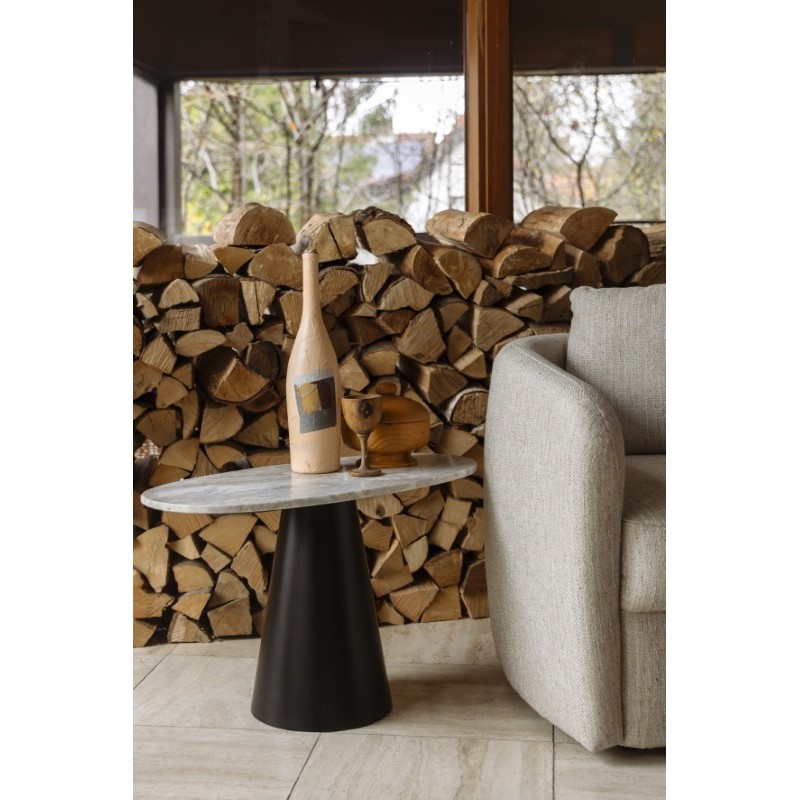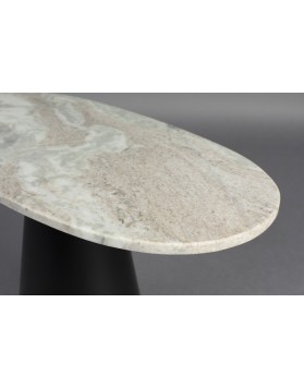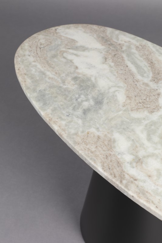 La Dutchbone Jared es para cualquiera que sueñe con un hogar lleno de objetos únicos. El diseño estilizado y las formas redondeadas confieren a la mesa un aspecto elegante y atemporal. Además, el contraste de materiales crea un efecto interesante. La combinación del tablero de mármol natural claro con la pata cónica de metal negro aporta un ambiente romántico y vintage. Por tanto, la mesa podría desempeñar un papel en un clásico del cine vintage de los años 50 o 60. Un complemento llamativo para la zona de asientos, que crea rápidamente un ambiente cálido.