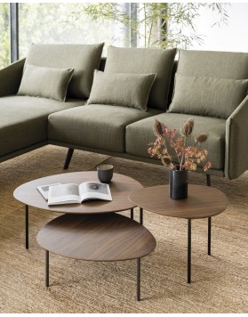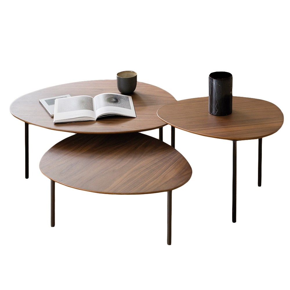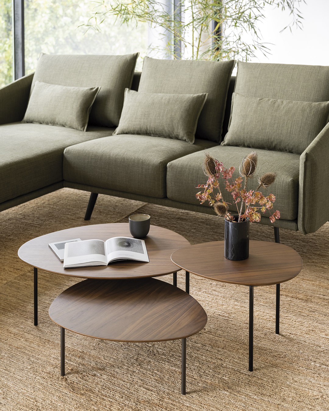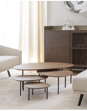 Estas mesas están inspiradas en las formas orgánicas que se encuentran en la naturaleza. Son 4 mesas de diferentes formas, diferentes tamaños y diferentes alturas. Esto permite a las mesas más pequeñas que se oculten bajo las mayores, como en los eclipses de donde toman su nombre. Las 4 formas de los sobres se pueden combinar de manera libre, creando configuraciones fluidas y originales. Con sus diferentes y peculiares formas, es una visión contemporánea de las tradicionales mesas nido.