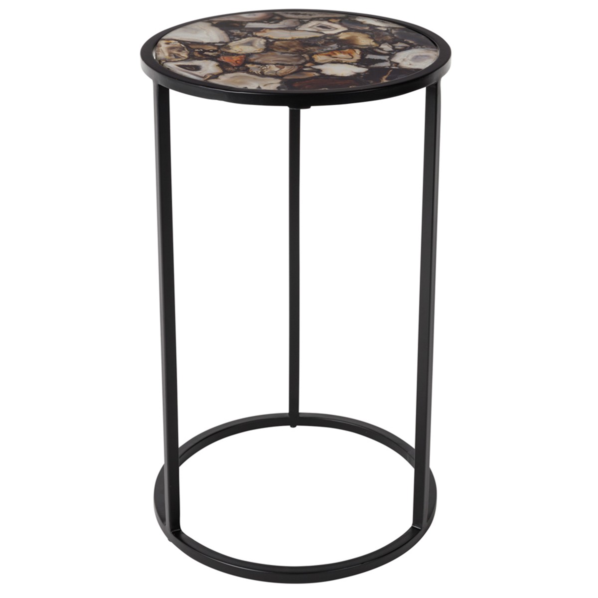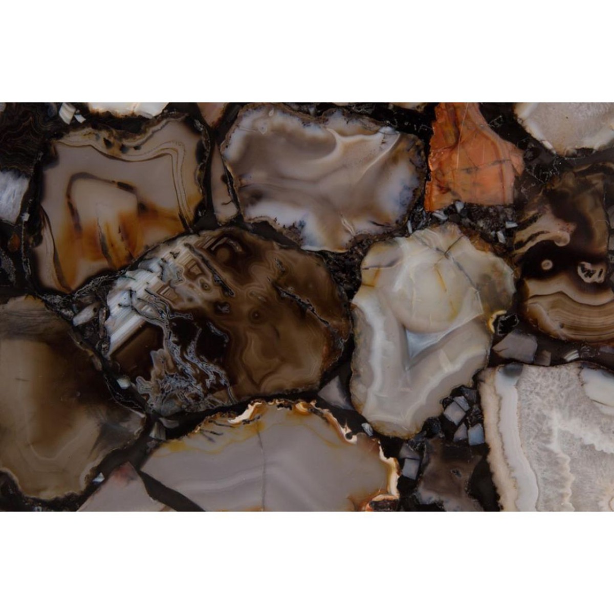 La mesa auxiliar Agate tiene una superficie de mesa hecha de la bella piedra ágata de la naturaleza. Todas y cada una de las mesas auxiliares son únicas, ya que no hay dos losas de esta piedra natural iguales.