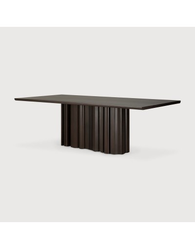 La mesa de comedor Slice, fabricada en roble macizo, destaca por su diseño simple a primera vista, pero enriquecido con sutiles detalles en sus esquinas. Estos pequeños toques aportan un aire de sofisticación lúdica sin perder su funcionalidad. Es una pieza sólida, elegante y perfectamente integrada en espacios contemporáneos.