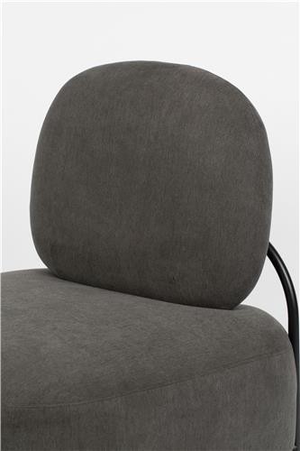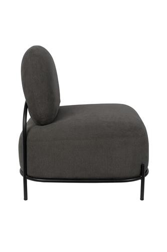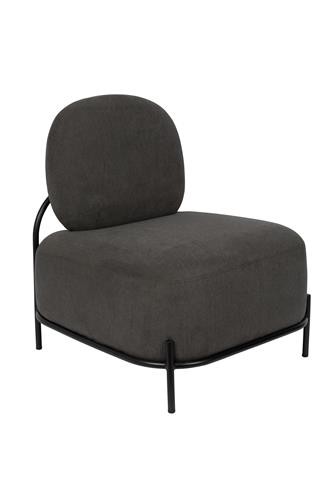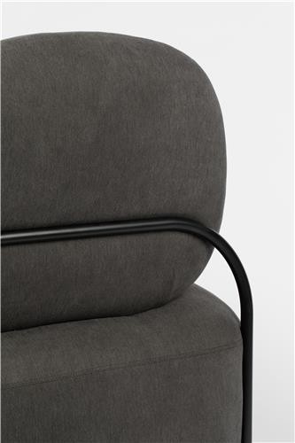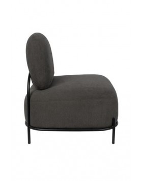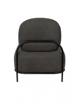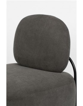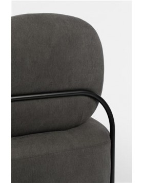 Butaca con tapizado fijo en poliéster y estructura de madera contrachapada con espuma de PU. Estructura de hierro con recubrimiento de polvo negro y patas con tapas de plástico para los pies.