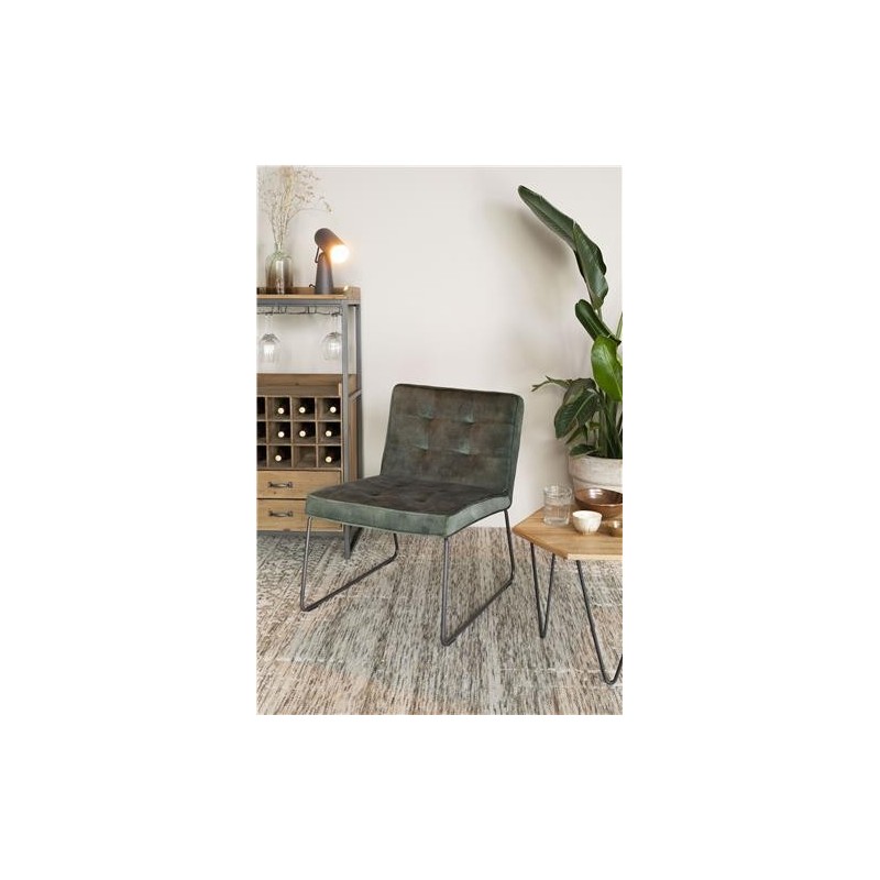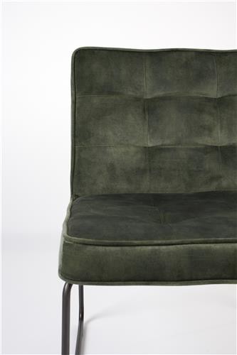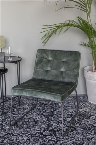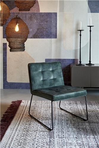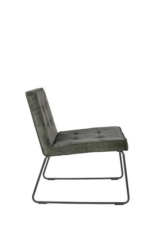 La butaca Kent está fabricada con carcasa de madera contrachapada de 1,3 cm, tapizado 100% poliéster y patas de metal gris con recubrimiento de polvo.