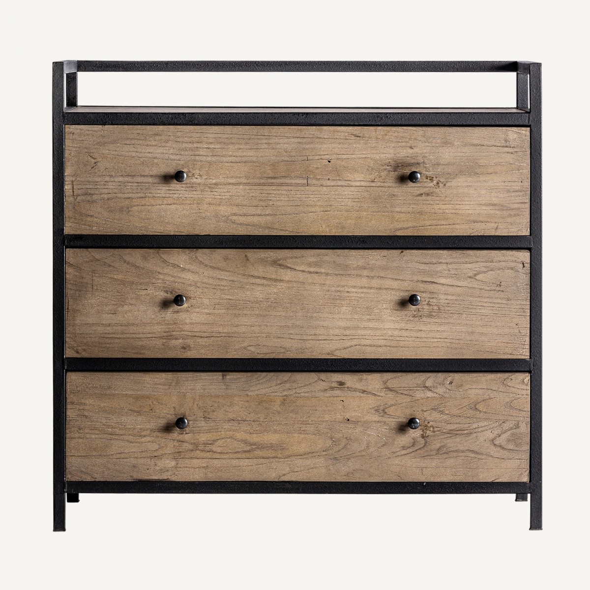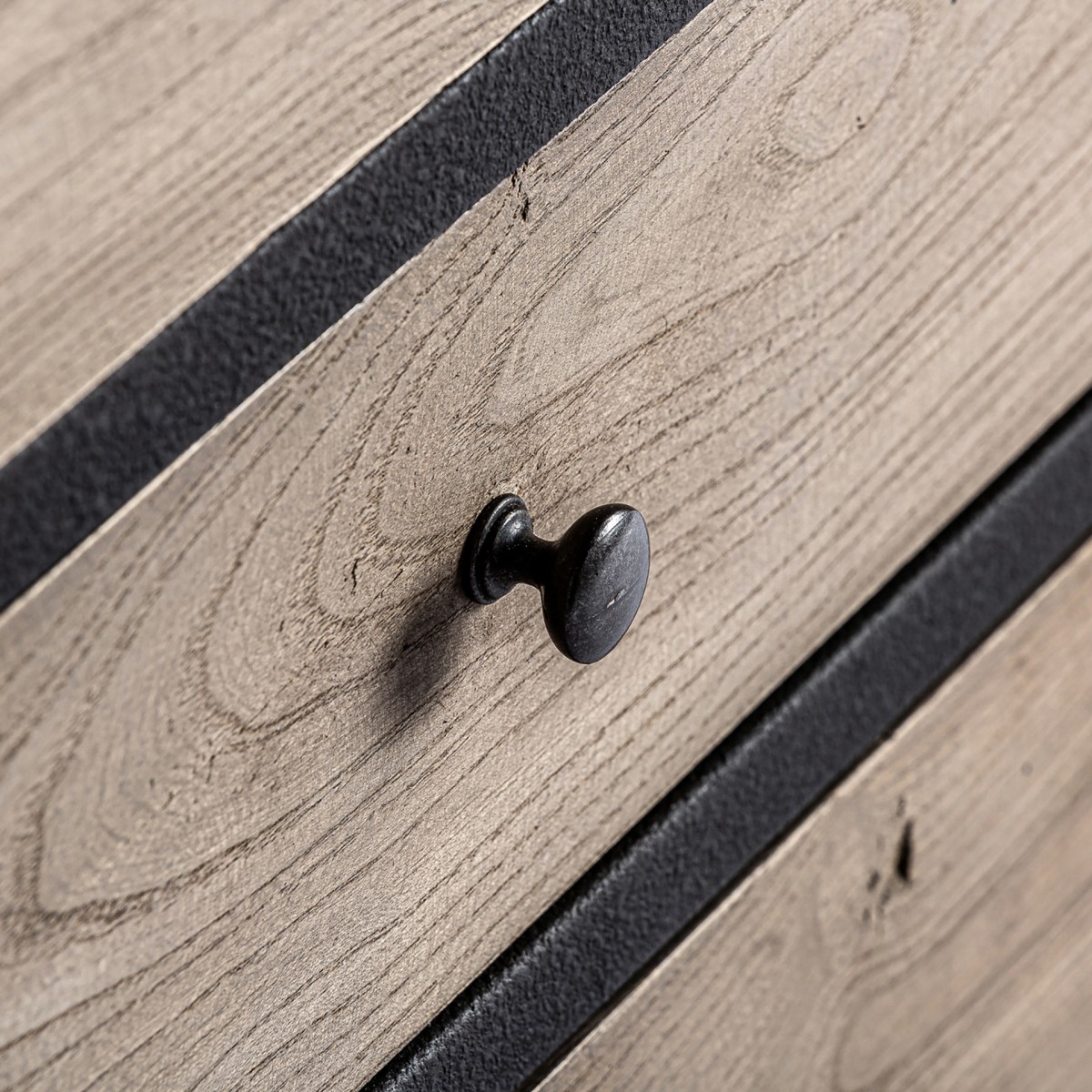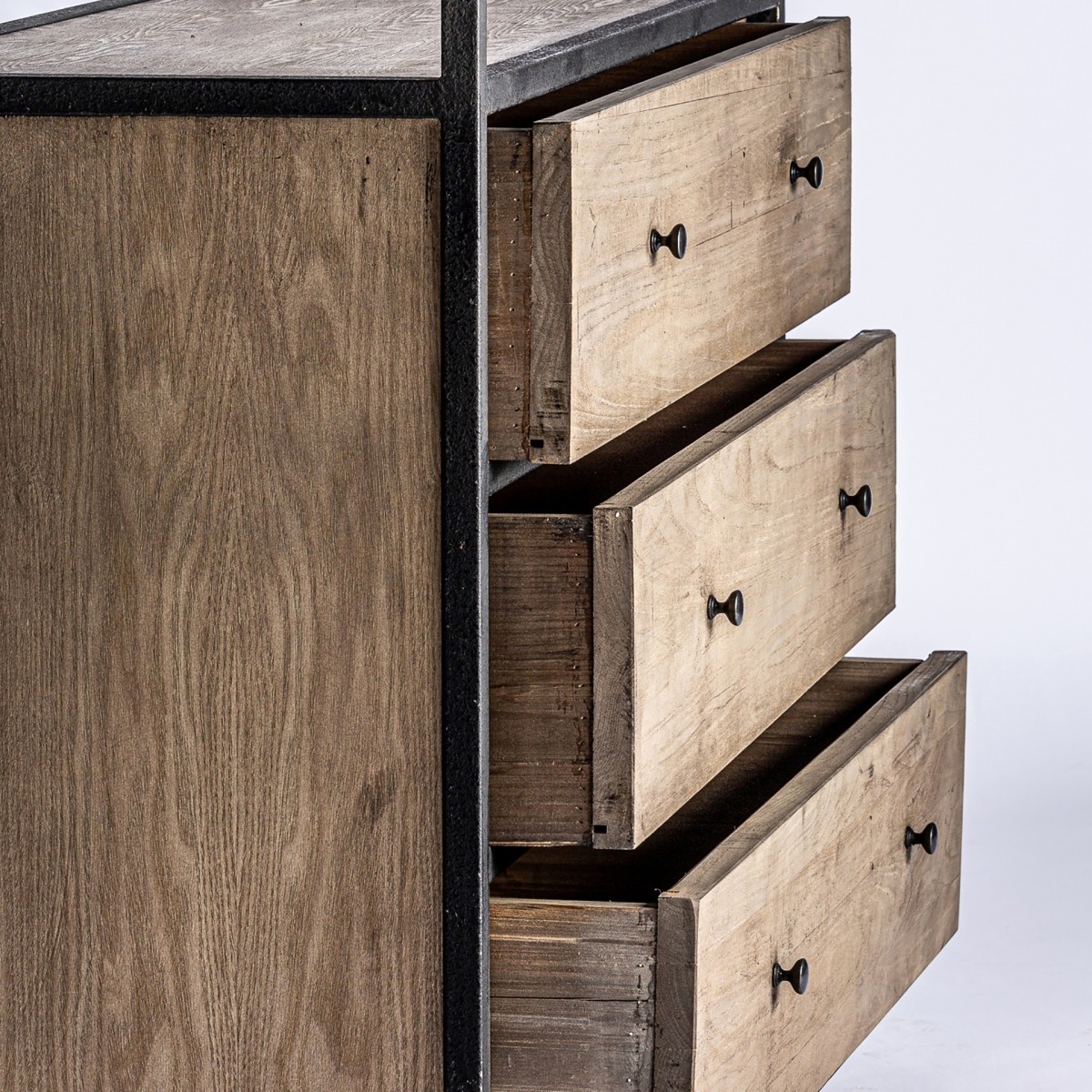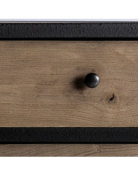 Cómoda de estilo industrial fabricada en madera de olmo en color natural y hierro con acabado negro