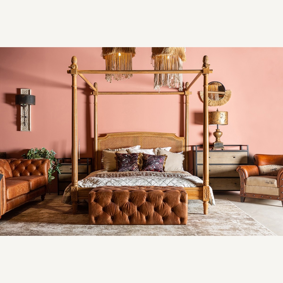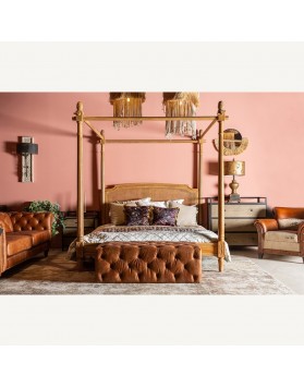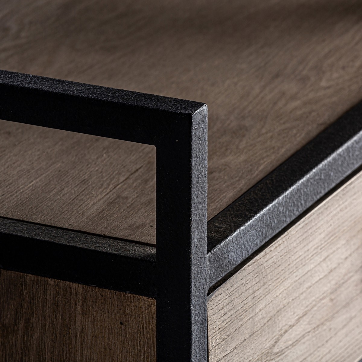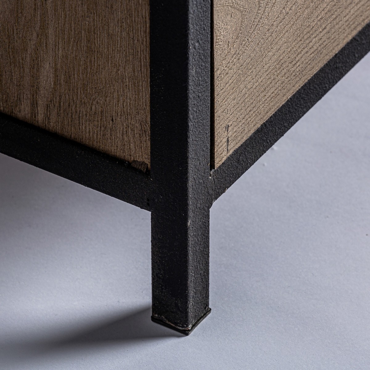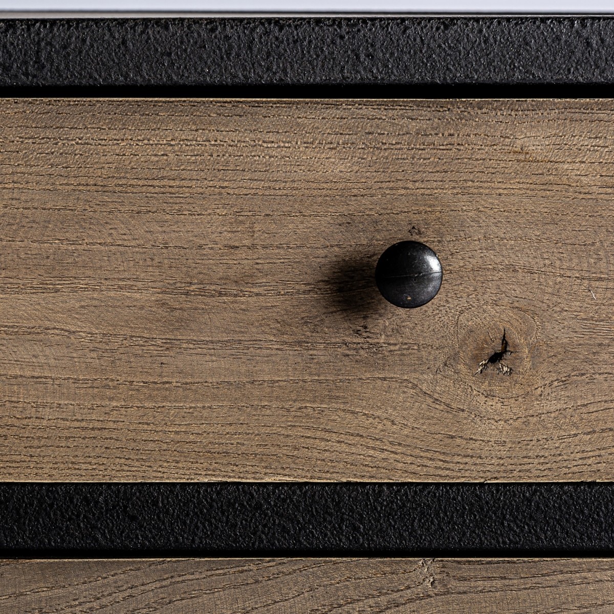 Cómoda de estilo industrial fabricada en madera de olmo en color natural y hierro con acabado negro