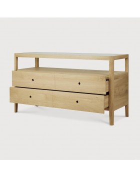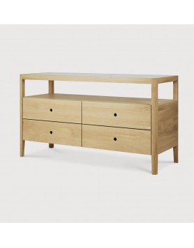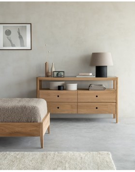 Inspirado en la tradicional rueca de hilar, las patas ligeramente en punta y los bordes redondeados añaden una calidad suave y sensual a esta hermosa colección de dormitorio. Esta cómoda es ideal tanto para el dormitorio como para espacios comerciales como una elegante pieza de almacenamiento.
