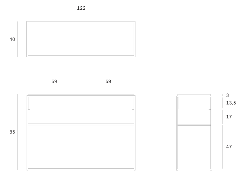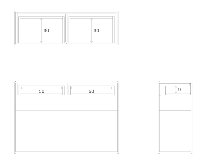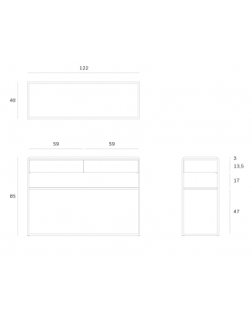 - Acabados: De roble macizo con un acabado de aceite de cera dura y un marco de metal negro o fabricada en roble macizo teñido en negro con acabado barnizado y un marco de metal negro.