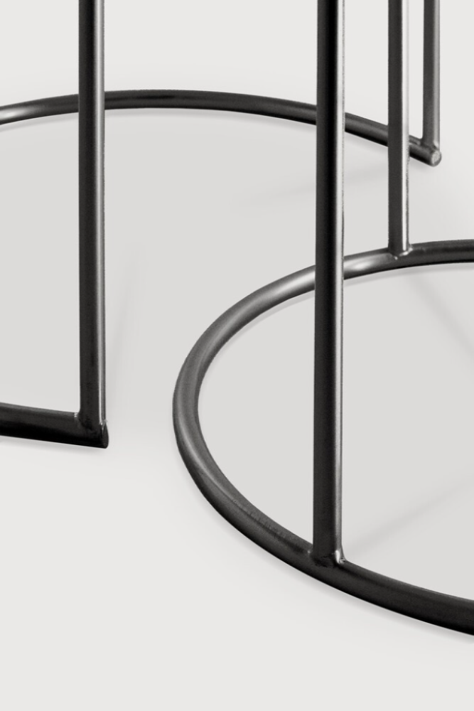 Su estructura de metal negro proporciona un contraste elegante y contemporáneo, además de garantizar estabilidad y resistencia. Gracias a su diseño tipo nido, las mesas pueden colocarse juntas para un look armonioso o separarse según tus necesidades, ofreciendo funcionalidad y versatilidad.