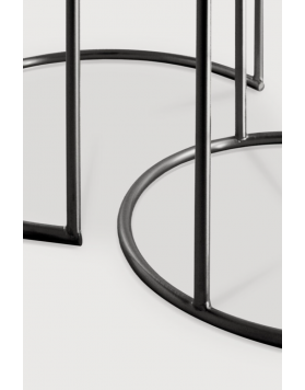 Su estructura de metal negro proporciona un contraste elegante y contemporáneo, además de garantizar estabilidad y resistencia. Gracias a su diseño tipo nido, las mesas pueden colocarse juntas para un look armonioso o separarse según tus necesidades, ofreciendo funcionalidad y versatilidad.