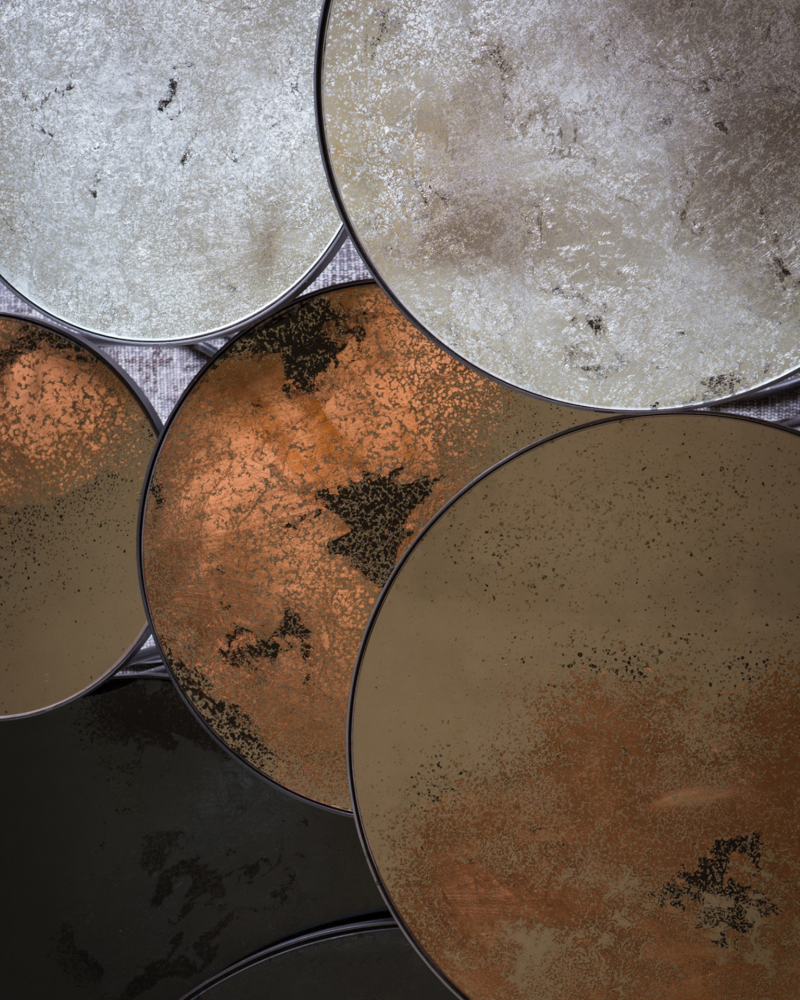 La Mesa de centro nido Nesting es la pieza ideal para quienes buscan un equilibrio entre estilo clásico y diseño actual. Su superficie de espejo envejecido refleja la luz y el entorno, creando una sensación de amplitud y luminosidad en cualquier espacio. El efecto envejecido aporta un aire vintage lleno de personalidad, convirtiéndola en el centro de atención de tu salón.