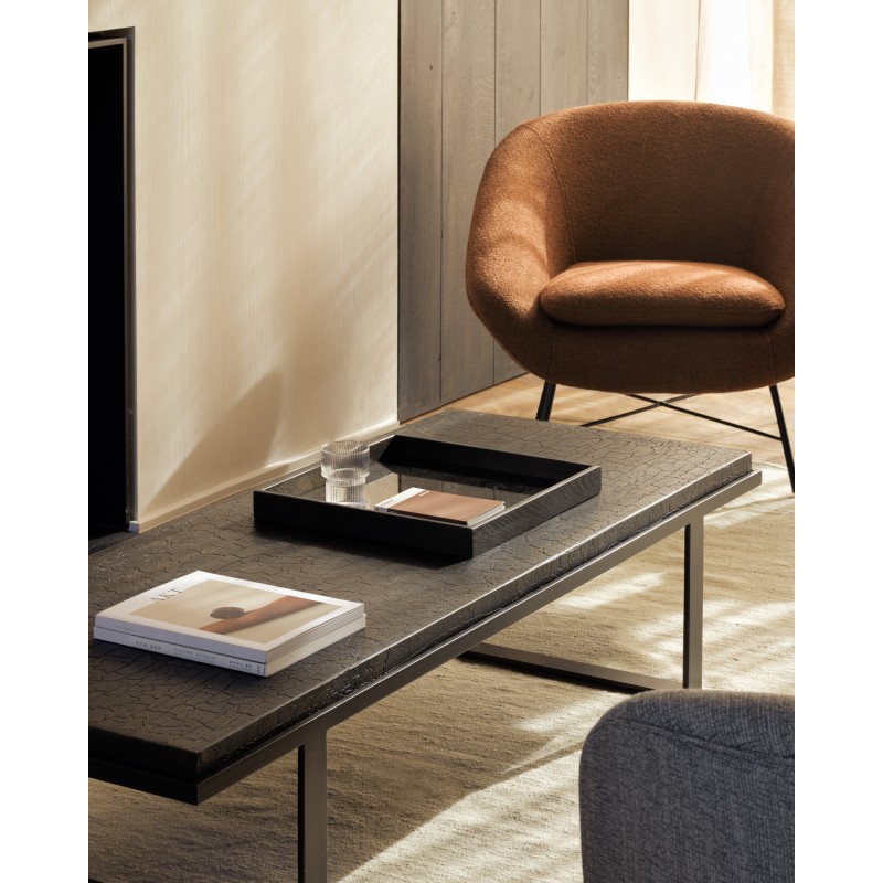 La mesa de centro Stability es una pieza escultórica que combina carácter artesanal y diseño contemporáneo. Su sobre de gran presencia visual y su base metálica ligera crean un equilibrio perfecto, aportando personalidad, textura y sofisticación al espacio.