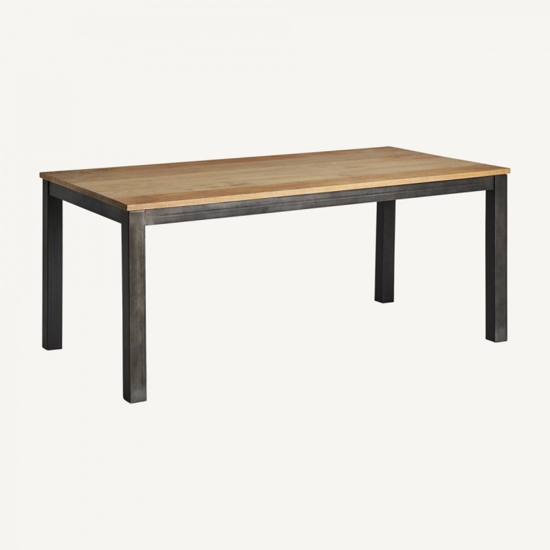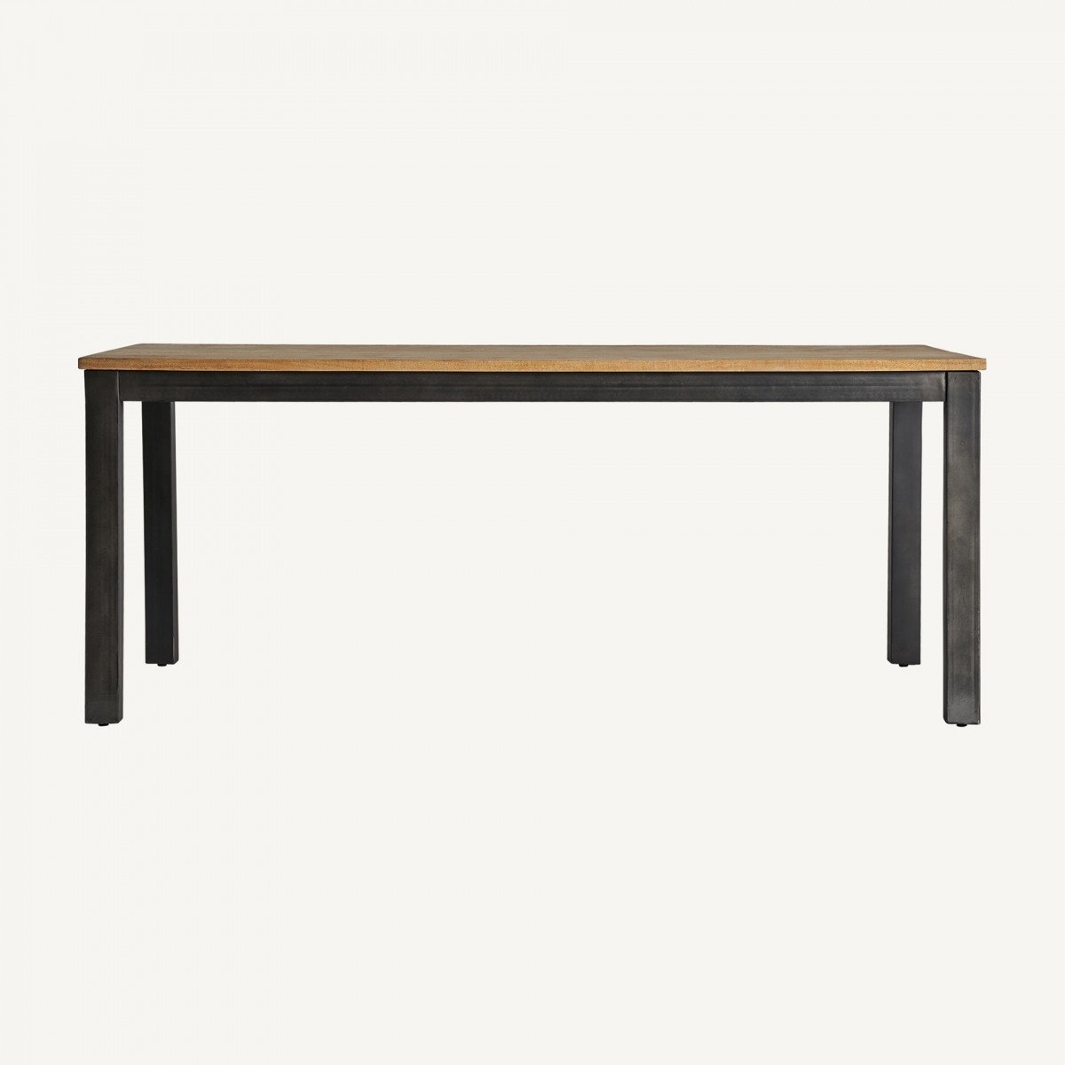 Mesa de comedor en estilo industrial hecha en madera de mango y hierro, en color negro/natural. Producto desmontable