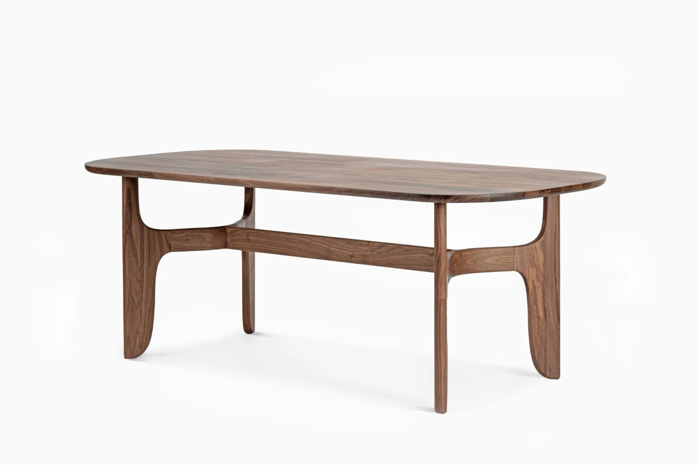 Mesa maciza de nogal americano de alta calidad, con acabados impresionantes. Sus patas curvadas evocan la ligereza de unas alas, mientras que el tablero de líneas suaves y bordes redondeados aporta calidez y presencia. Con diferentes tamaños disponibles, esta pieza única se adapta como mesa de comedor o centro de reunión, dando carácter y elegancia al espacio que ocupa.