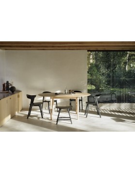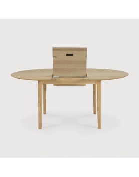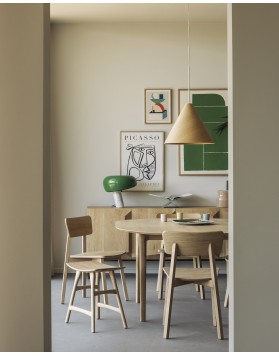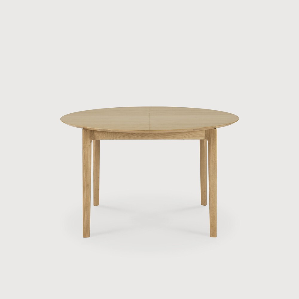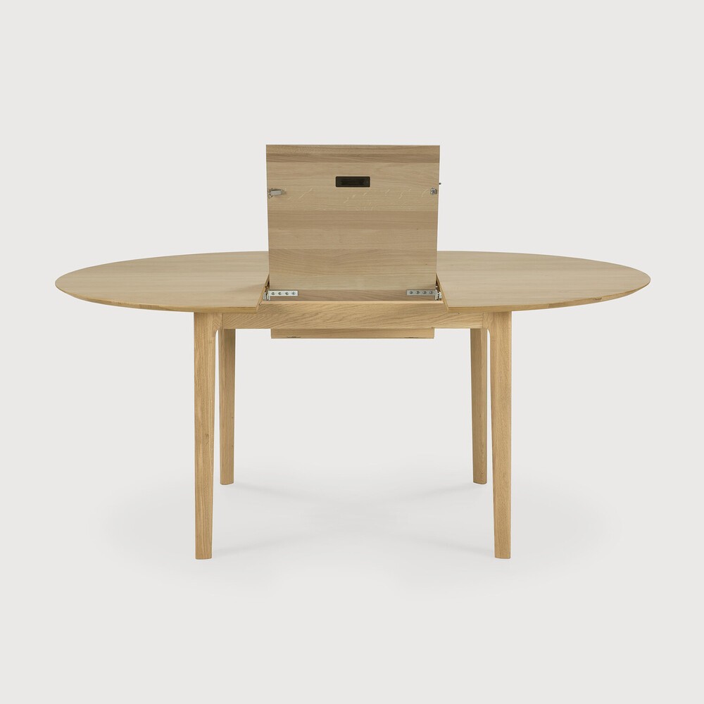 La mesa de comedor redonda extensible de roble macizo Bok ofrece la solución perfecta para cenar de forma adaptable en un espacio reducido. Con una extensión alojada internamente, la mesa redonda de cuatro plazas se adapta fácilmente a más personas. La icónica forma ligera de Bok y su sólida construcción la hacen atemporal para disfrutarla en los años venideros.