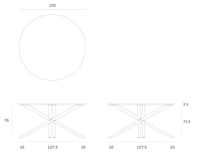 El carácter escultórico de la mesa de comedor Mikado es el resultado de una búsqueda para encontrar un equilibrio entre funcionalidad y estabilidad. Las patas se entrelazan como un rompecabezas bien pensado, dispuesto bajo un tablero redondo sólido