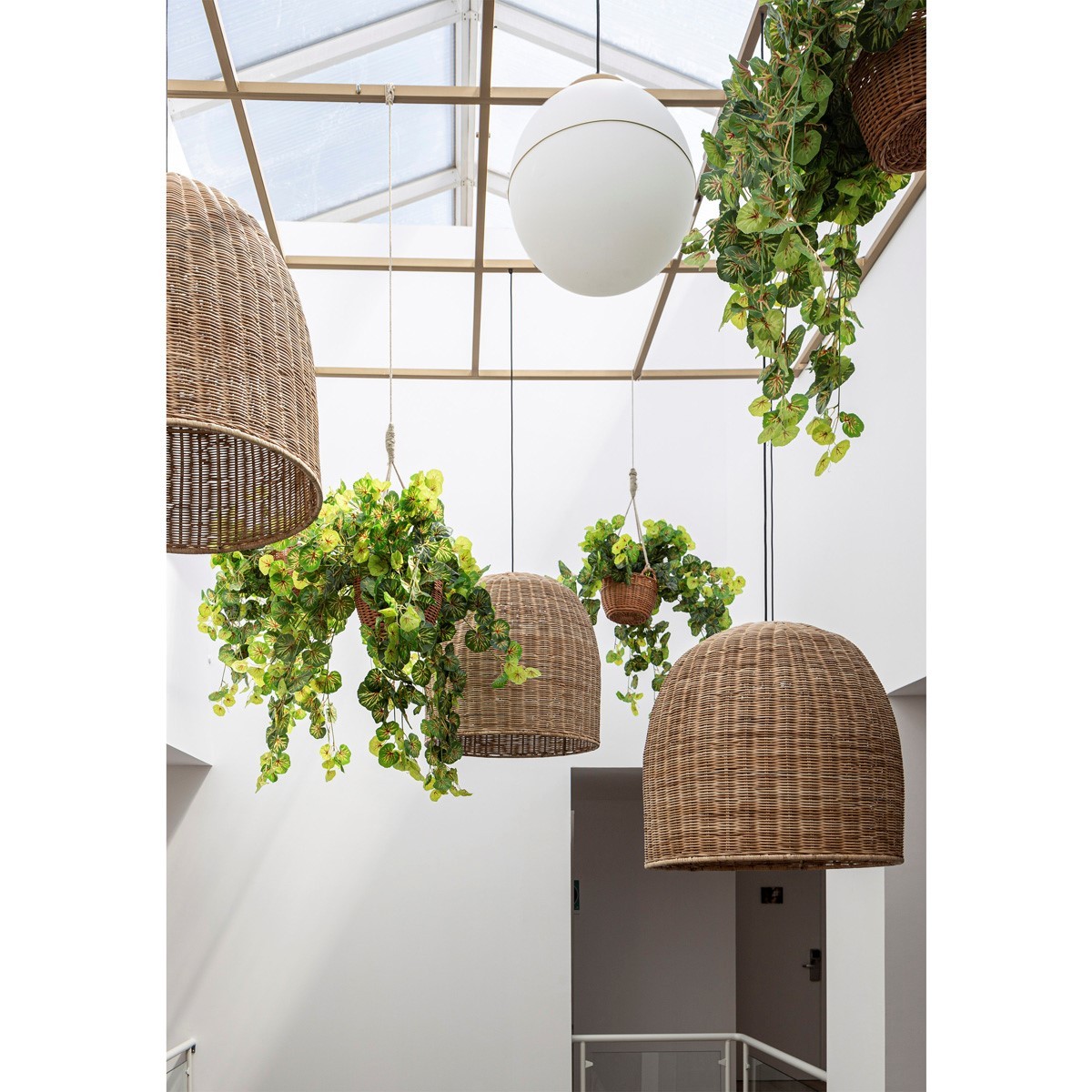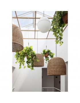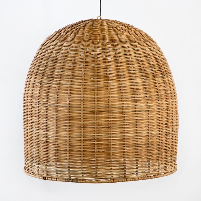 Lámpara colgante de techo en mimbre natural tejido. Disponible en blanco, natural y gris.