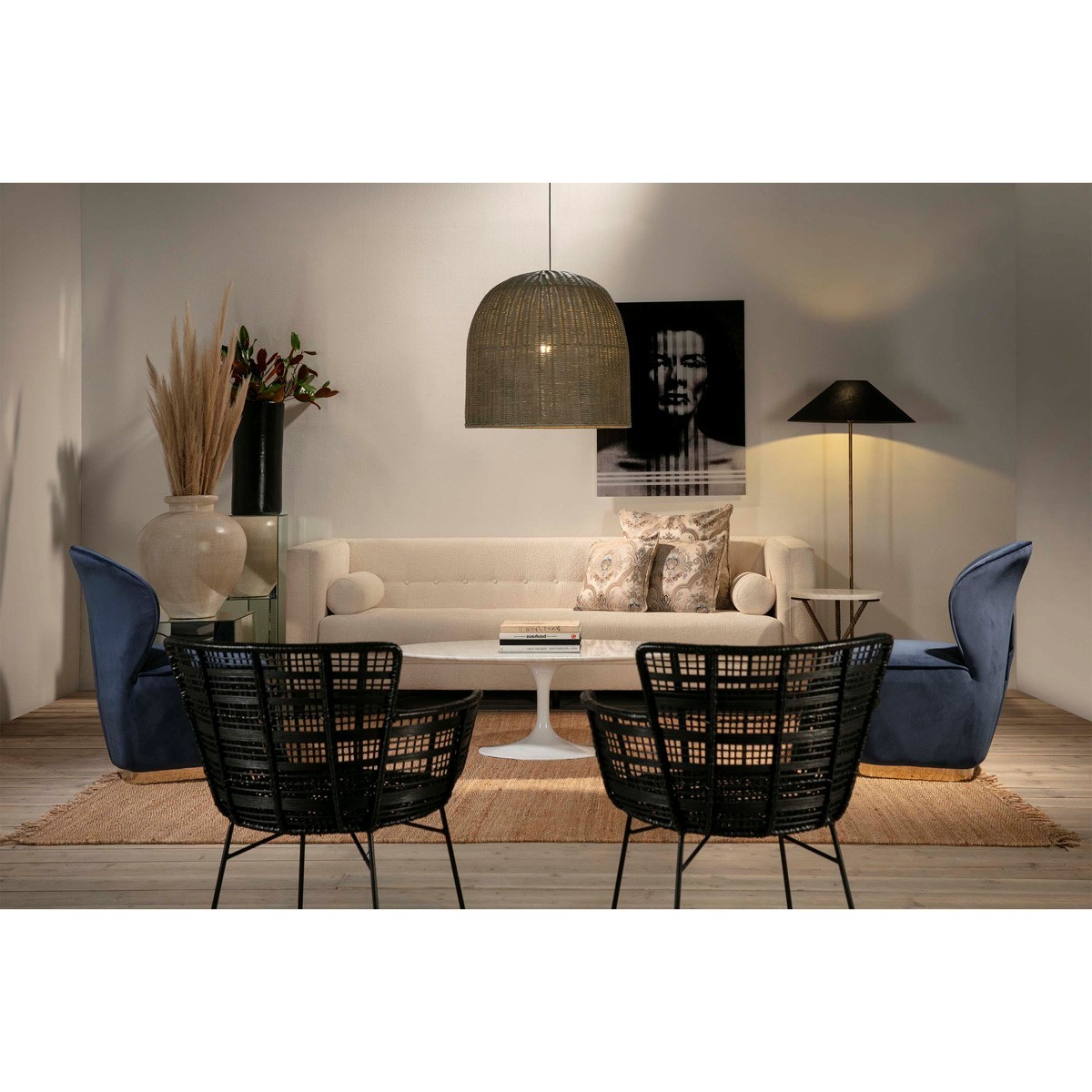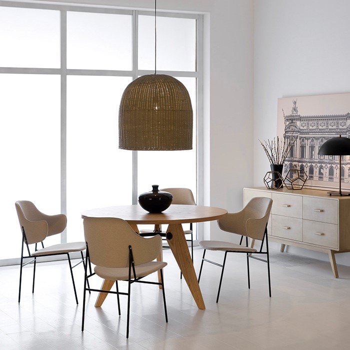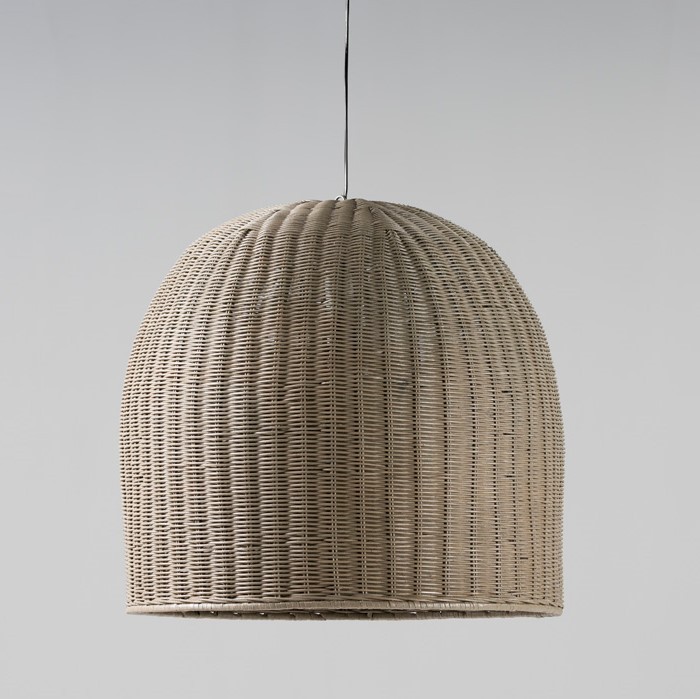 Lámpara colgante de techo en mimbre natural tejido. Disponible en blanco, natural y gris.