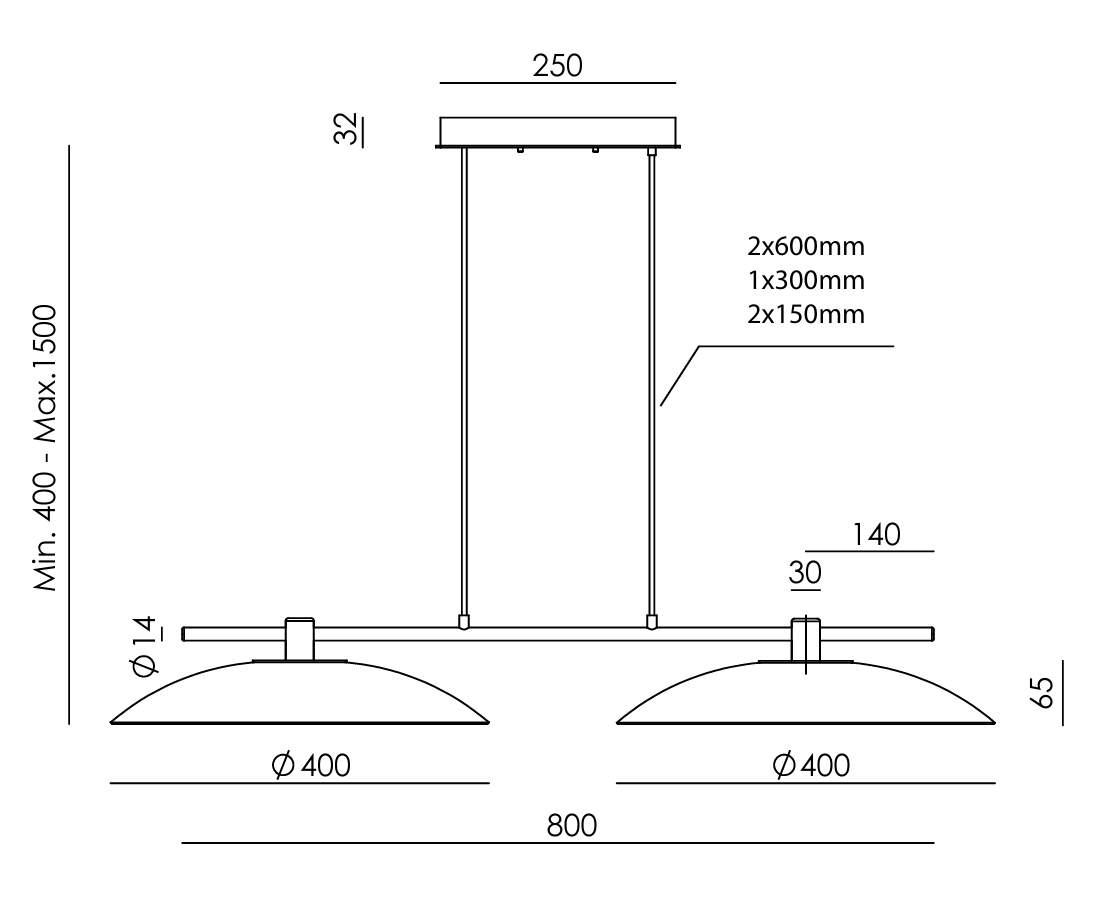 Esta lámpara colgante combina una estructura metálica en acabados contemporáneos con tulipas de vidrio que aportan ligereza visual y un efecto lumínico cálido. Su doble fuente LED integrada ofrece una potencia total de 20W, con tonalidad cálida de 2700K y flujo luminoso de 1620 lúmenes. El florón incorpora driver TRIAC para regulación de intensidad, adaptándose a diferentes momentos y necesidades. Diseñada para interiores, cuenta con grado de protección IP20 y funcionamiento a 220-240V.