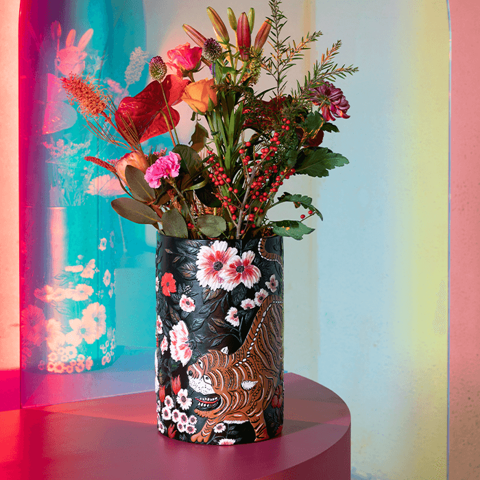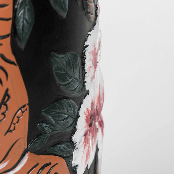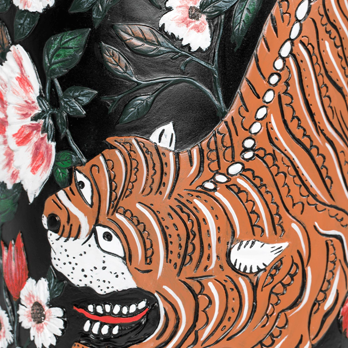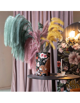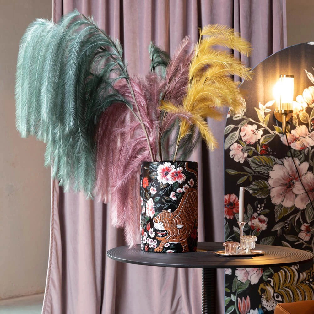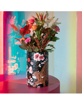 ¿Quieres arreglar tu espacio? Bueno, con el jarrón Songs Of The Night, ahora puedes hacerlo. En oro mate o en versión tigre exótico, pintada a mano. Hecho de resina lacada, seguramente sentará hermoso en cualquier superficie o estante que elija.