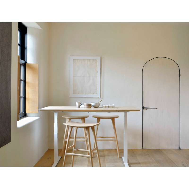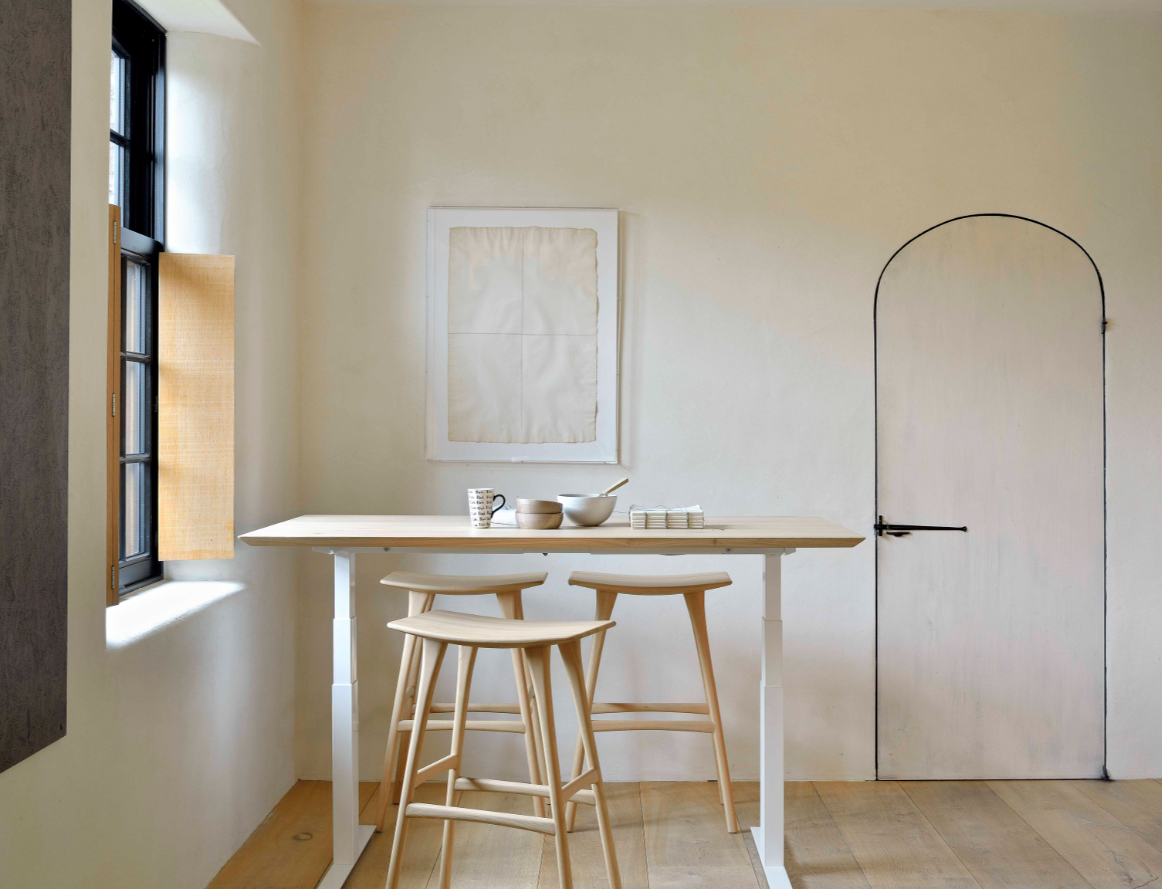 Pensando en la importancia de la salud y la buena postura, Alain van Havre desarrolló el escritorio ajustable Bok. El sistema motorizado de sus patas permite elevar el tablero de la mesa a la altura que desee. De este modo, podrá alternar fácilmente entre estar sentado y de pie a lo largo de la jornada laboral