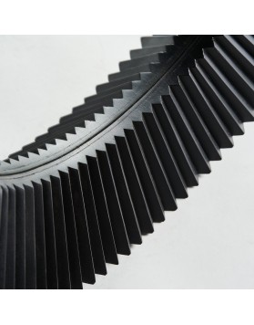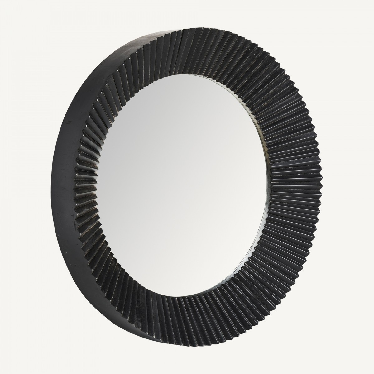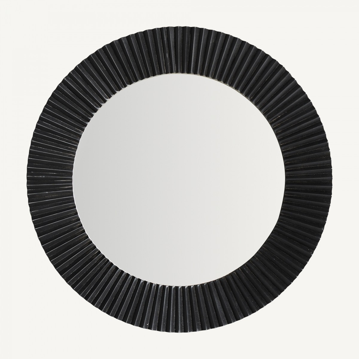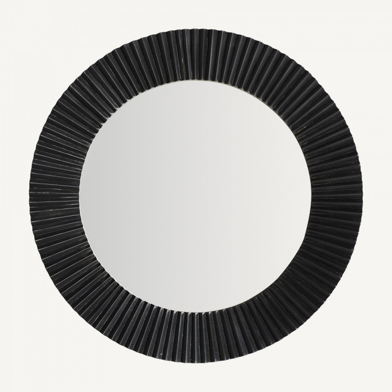 Aro es un espejo de estilo art deco en color negro. Tiene un hermoso marco circular, con relieve fresado en madera de mango.