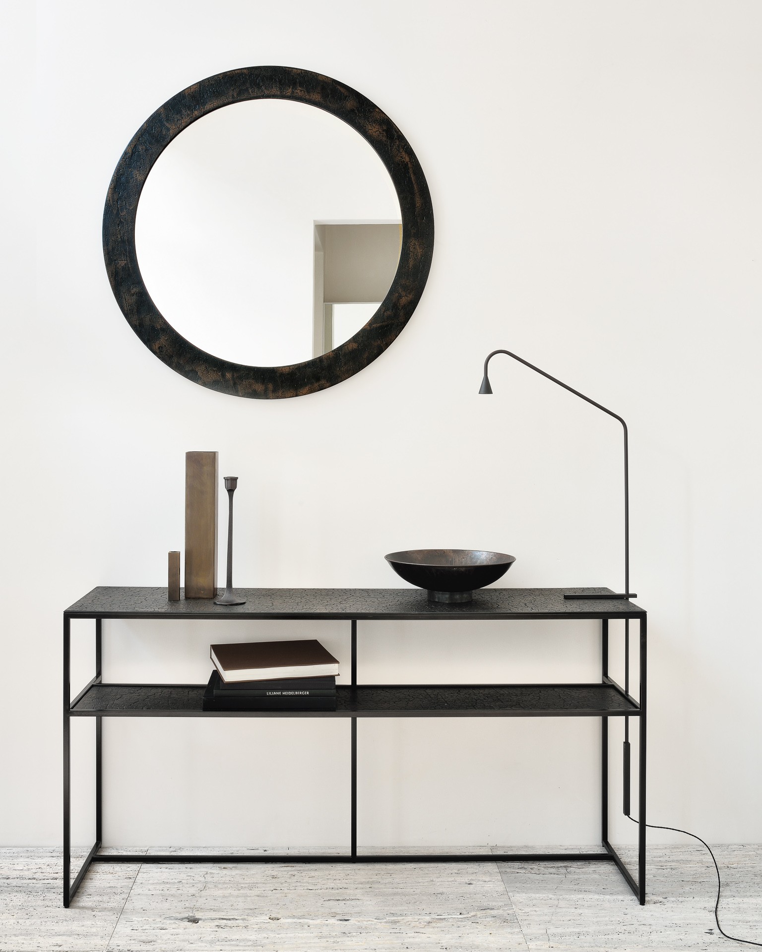 El espejo de pared Sphere destaca por su marco artesanal, modelado a mano por expertos artesanos. Se inspira en técnicas artísticas ancestrales que aportan autenticidad y carácter. Los polvos minerales naturales y pigmentos crean tonos terrosos y texturas únicas. Su diseño elegante y atrevido realza cualquier ambiente. Un espejo ideal para quienes buscan estilo, calidad y personalidad en su espacio.