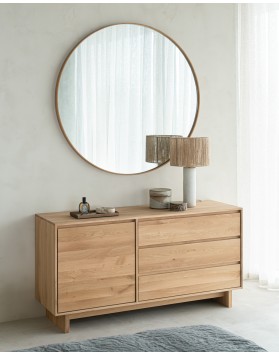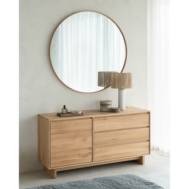 El espejo Layers con bordes de roble y redondez perfecta:  se integrará y a la vez destacará en cualquier ambiente de baño. Todas las piezas de la colección de baño Ethnicraft, incluidos los espejos y otros artículos adicionales, han sido acabados con productos que cumplen los requisitos necesarios para su uso en zonas húmedas.