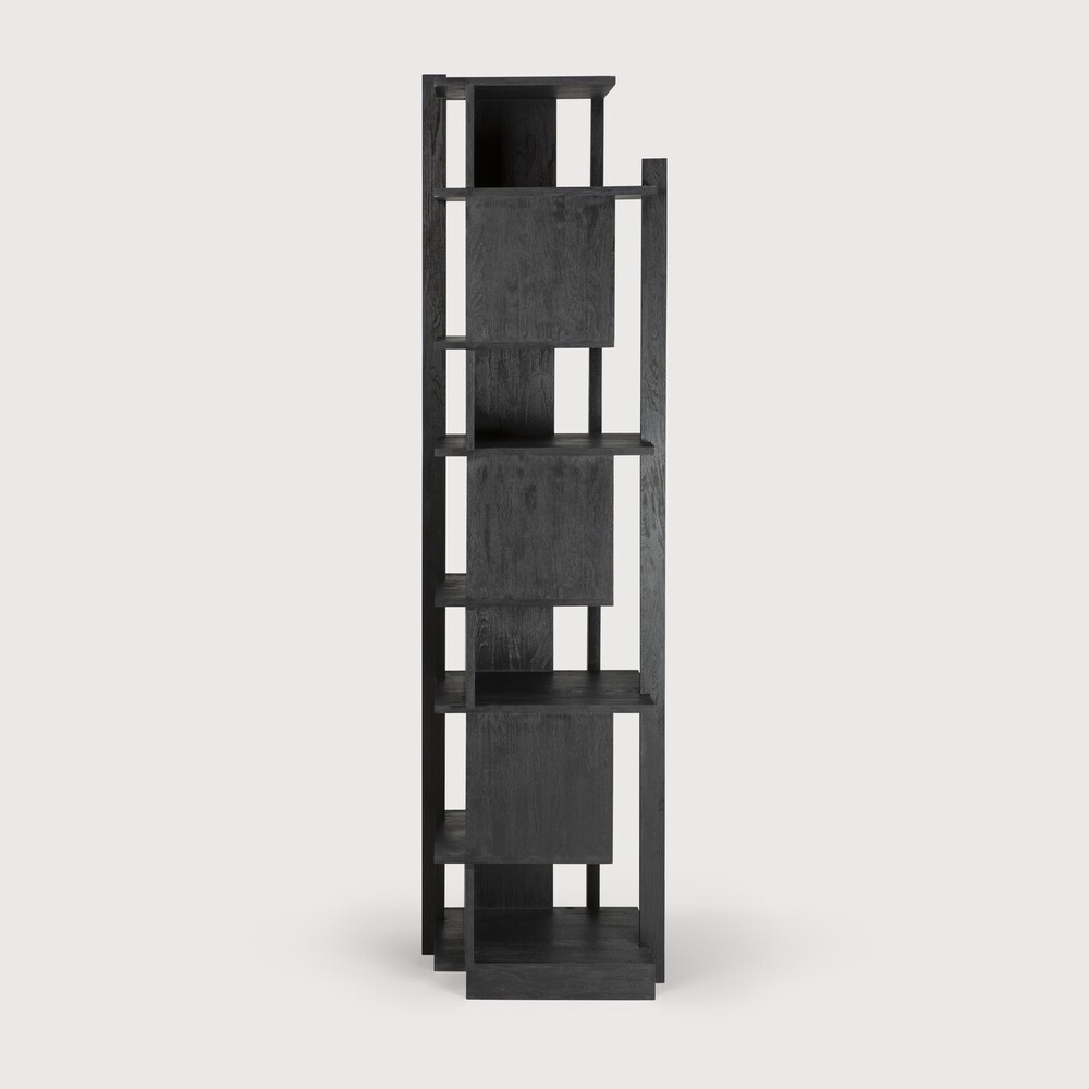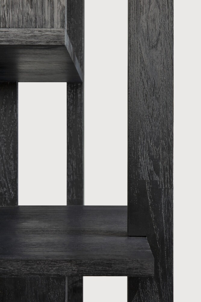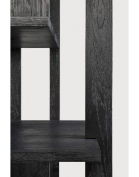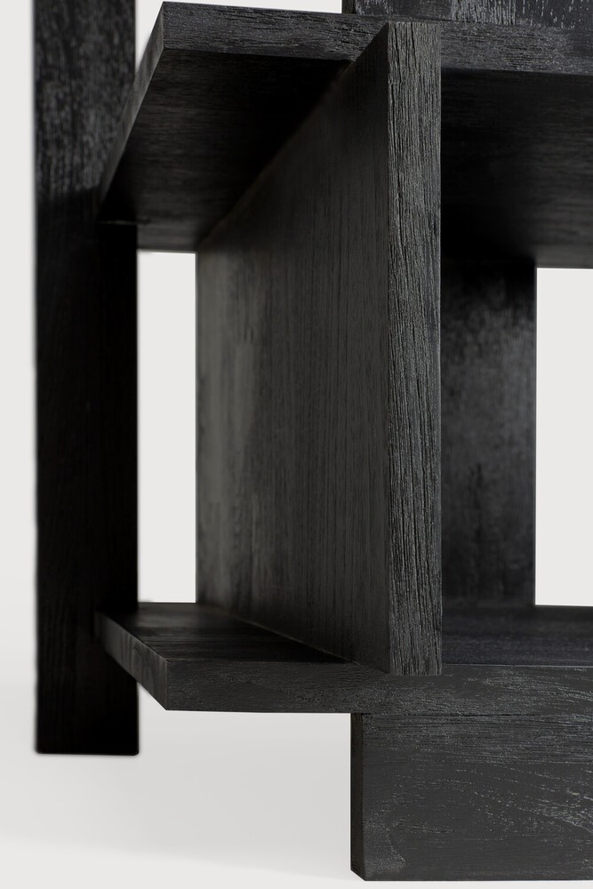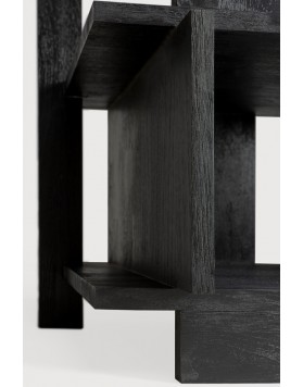La columna Abstracta es una pieza que transforma rincones vacíos en focos de interés visual gracias a su diseño artístico y moderno. Su inspiración en De Stijl se manifiesta en formas puras, equilibrio geométrico y una intención clara de unir belleza y propósito. El acabado negro contemporáneo potencia la profundidad y las sombras naturales de la teca, creando una pieza que se percibe diferente según el ángulo desde el que se observe. Elaborada en teca teñida de negro y certificada FSC, con un acabado barnizado que protege y realza la madera, esta columna ofrece una presencia sofisticada y atemporal en cualquier ambiente.
