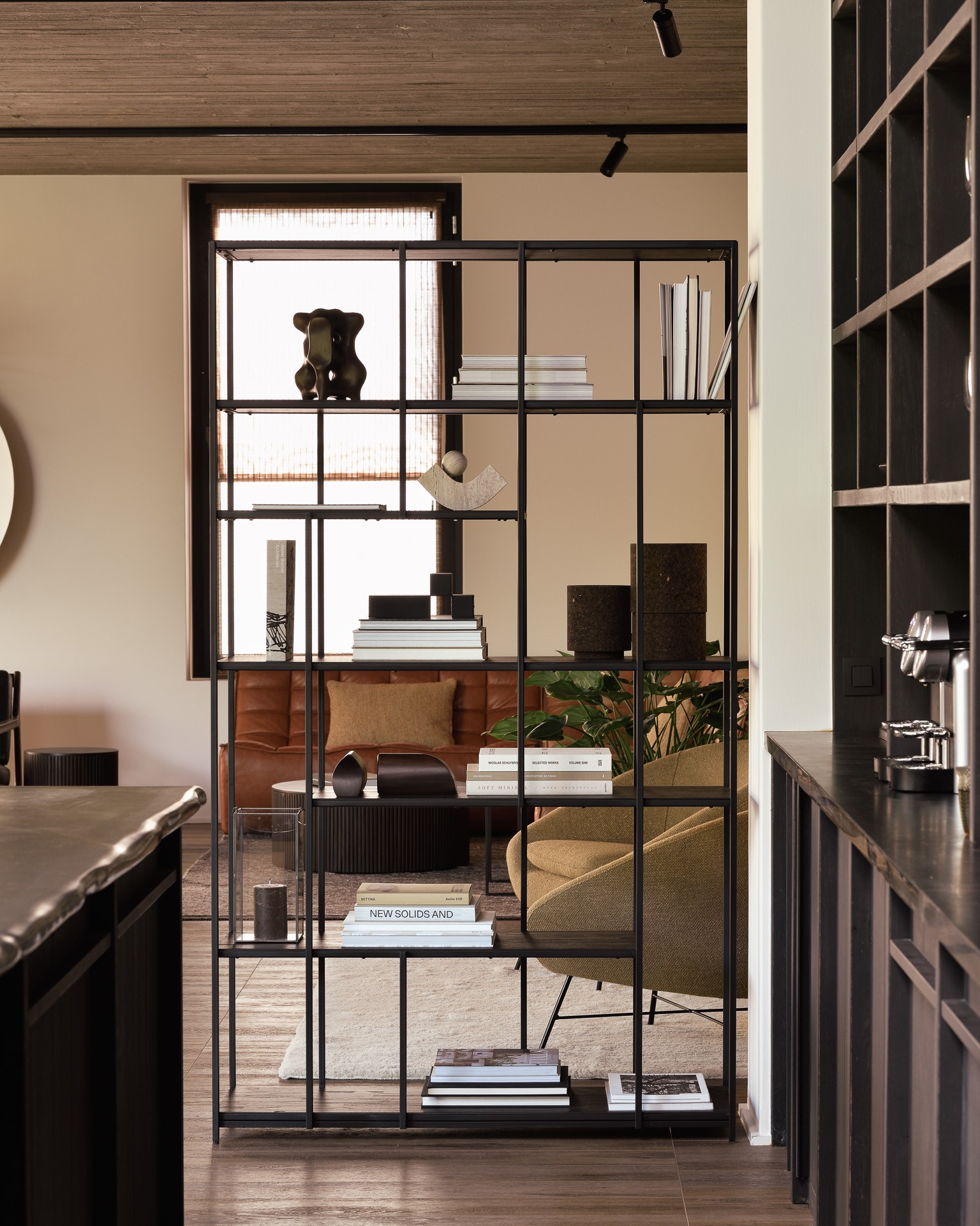 La estantería Studio ha sido diseñada para hacer de su oficina, taller, estudio o salón un lugar encantador en el que pasar el tiempo. Más aún si se adorna con objetos personales, algunas plantas bonitas y una luz cálida.
