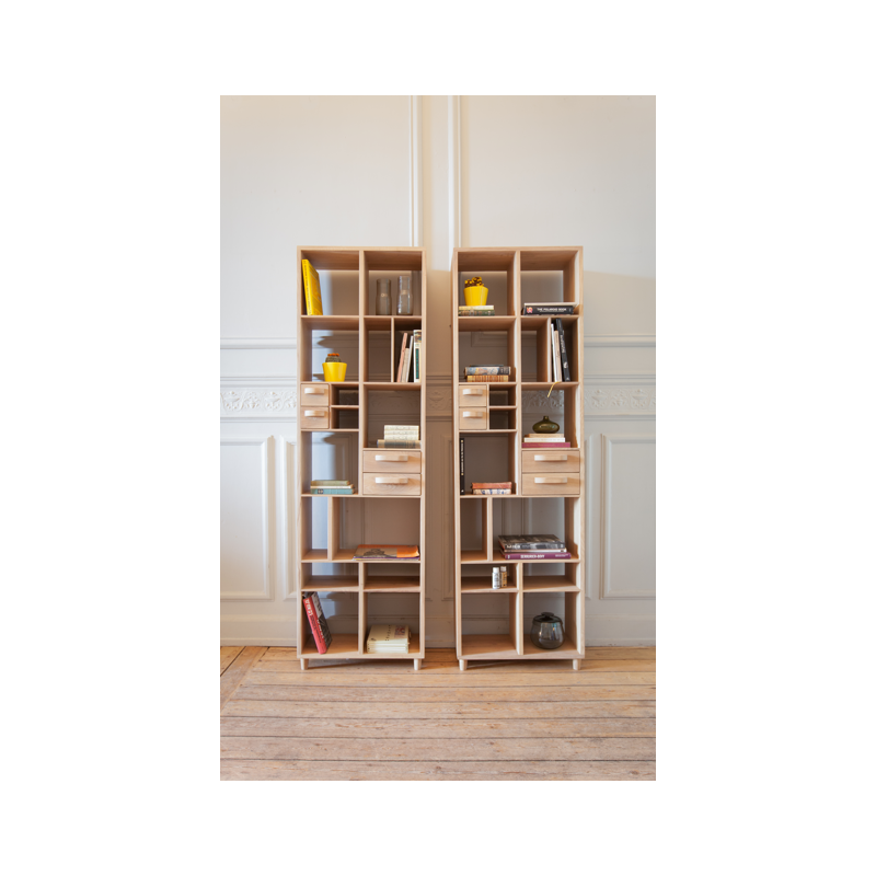 Divertido y al mismo tiempo serio, el estantería para libros Pirouette, inspirado en los años 60, es un espacio de almacenamiento funcional que se convierte en una pieza llamativa.