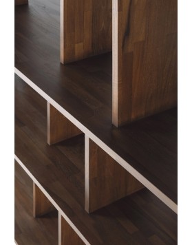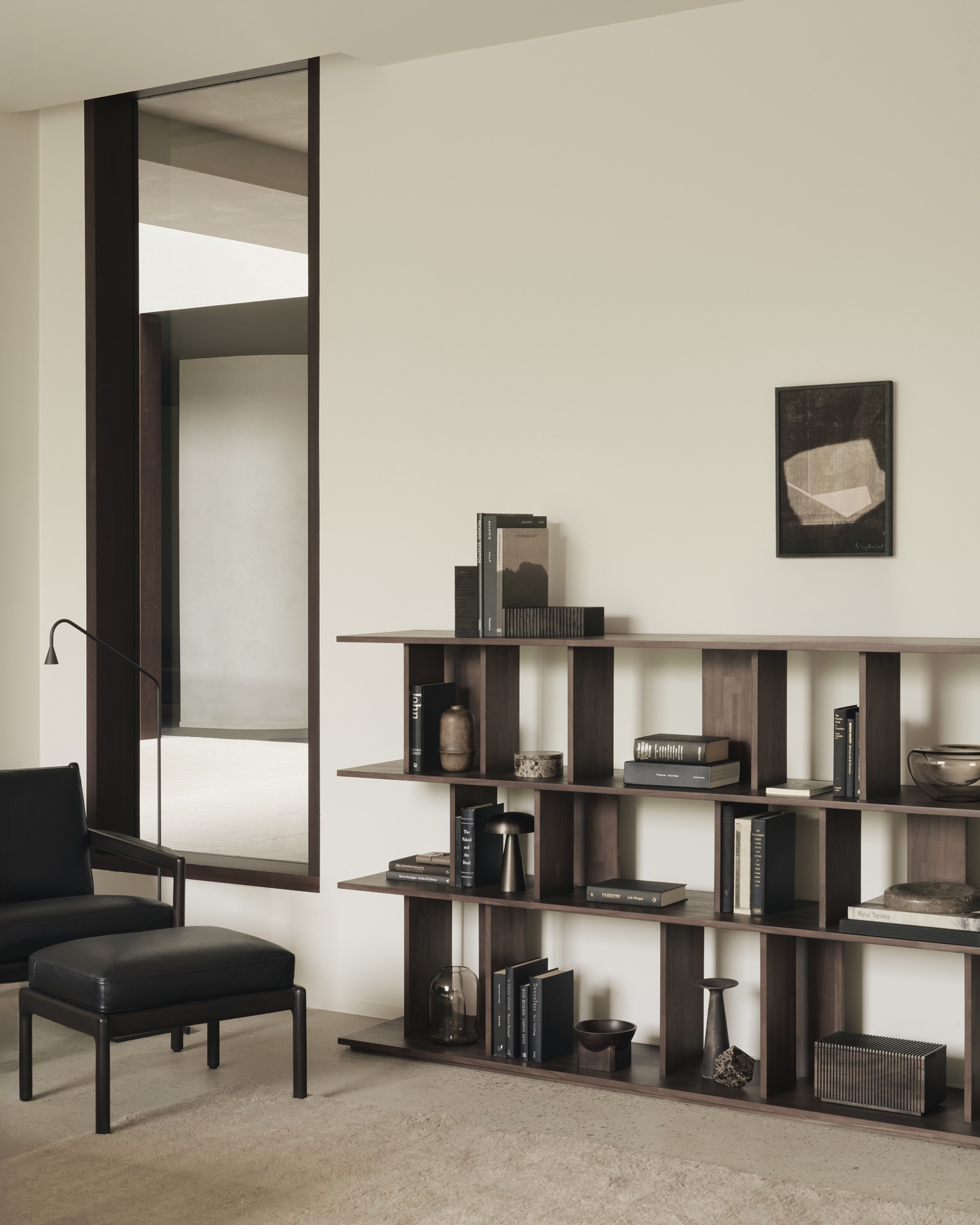 Celebrando la simplicidad rítmica. La estantería Irregular no es tan solo una solución de almacenamiento. También puede usarse como una elegante y práctica estantería en una pared, o como un sofisticado separador de ambientes con un toque distintivo, ya sea de forma individual o en grupo para completar un espacio.