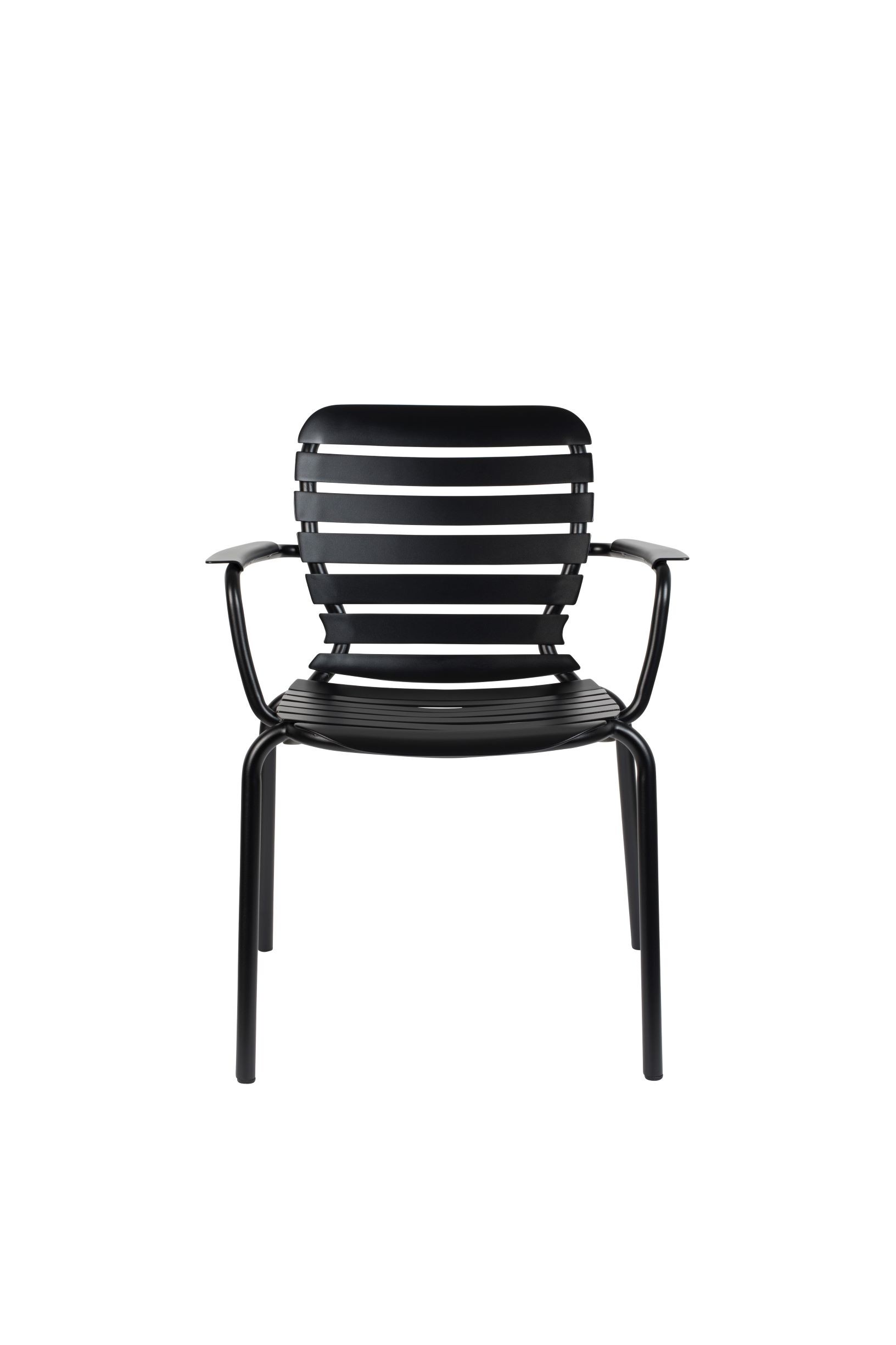 Este conjunto es atractivo, pero también es resistente y está hecho para las condiciones climáticas extremas. Piense en mucha lluvia, viento pero también semanas de sol. Está disponible con o sin reposabrazos. Hicimos tanto la silla como el sillón en tres colores diferentes.