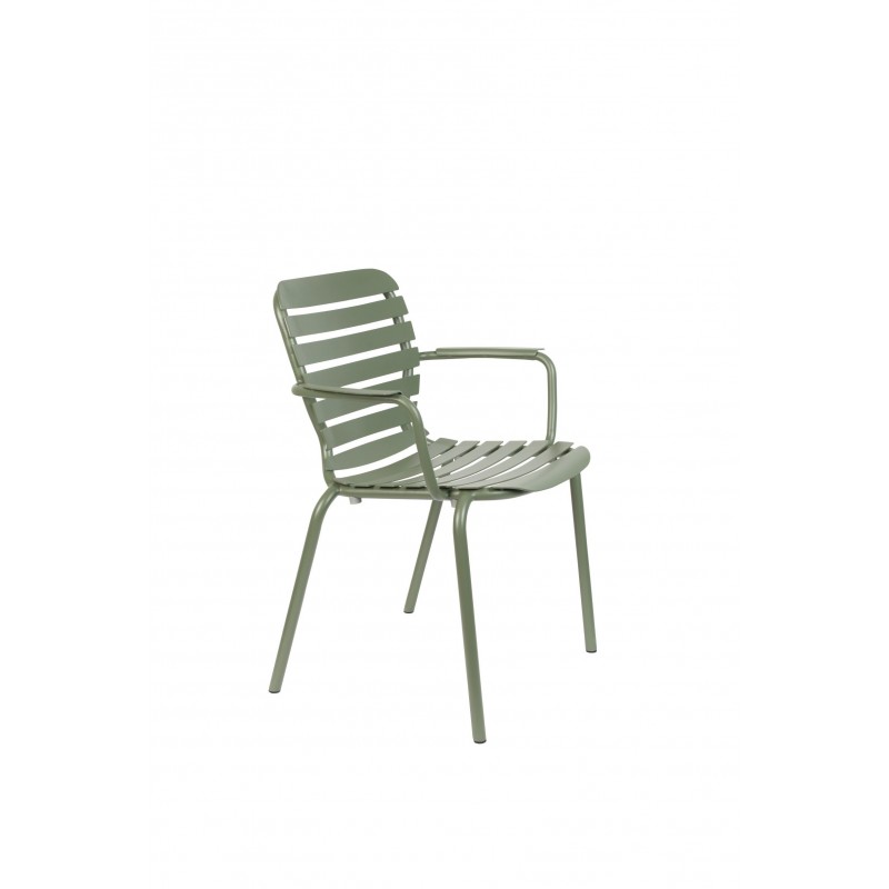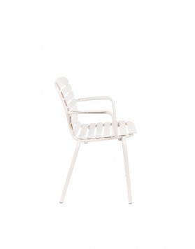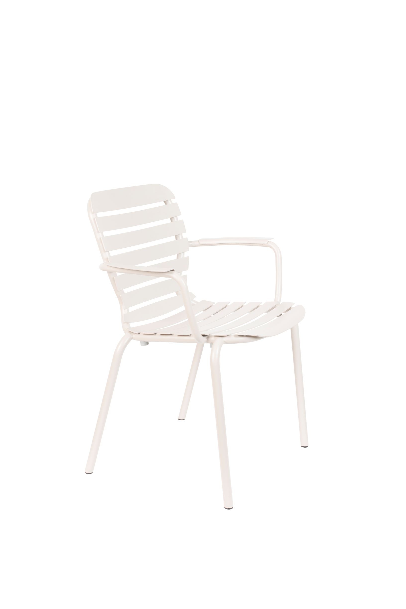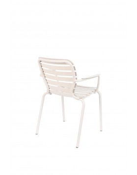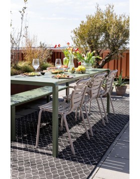 Este conjunto es atractivo, pero también es resistente y está hecho para las condiciones climáticas extremas. Piense en mucha lluvia, viento pero también semanas de sol. Está disponible con o sin reposabrazos. Hicimos tanto la silla como el sillón en tres colores diferentes.