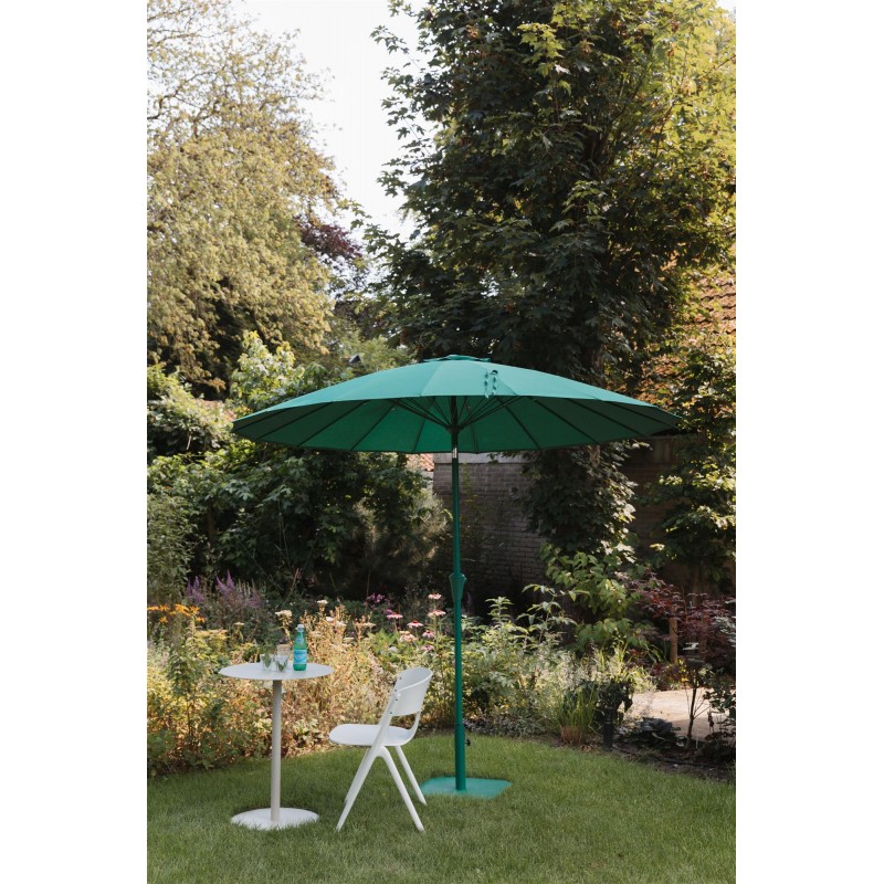 Ten en cuenta que la sombrilla debe estar lastrada o asegurada con placas de base para una estabilidad óptima en diversas condiciones climáticas.