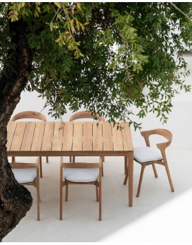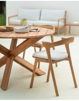 Un diseño característico de Ethnicraft, la icónica silla de comedor Bok, ahora también para exteriores. Lleve la elegancia estructural y la artesanía contemporánea a su estilo de vida al aire libre.
