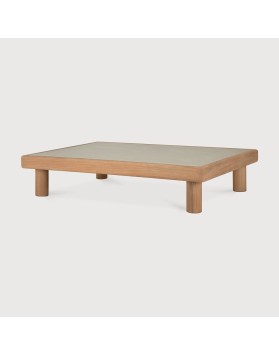 La superficie de la mesa es de cemento acabado a mano y sellado para una protección óptima contra derrames que favorece el uso diario al aire libre. La base está hecha de teca maciza.