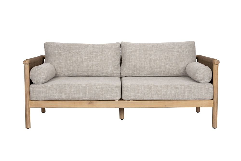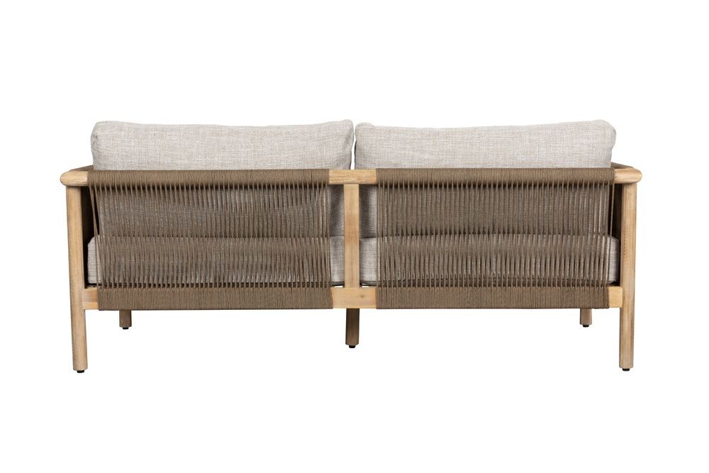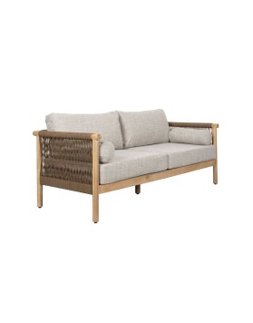 Conjunto sofá y mesa de centro Oasis destaca por su diseño moderno con cuerda decorativa entre respaldo y reposabrazos.