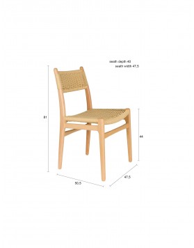 El comedor es el lugar para disfrutar de historias divertidas y buena comida con amigos y seres queridos. Con sus colores y materiales naturales, esta silla de comedor aporta inmediatamente más calidez al espacio. El diseño se inspira en la acogedora sensación de un interior de los años 50, 60 o 70, lo que le da a la silla un agradable aire vintage que a la vez se adapta perfectamente a un interior contemporáneo.