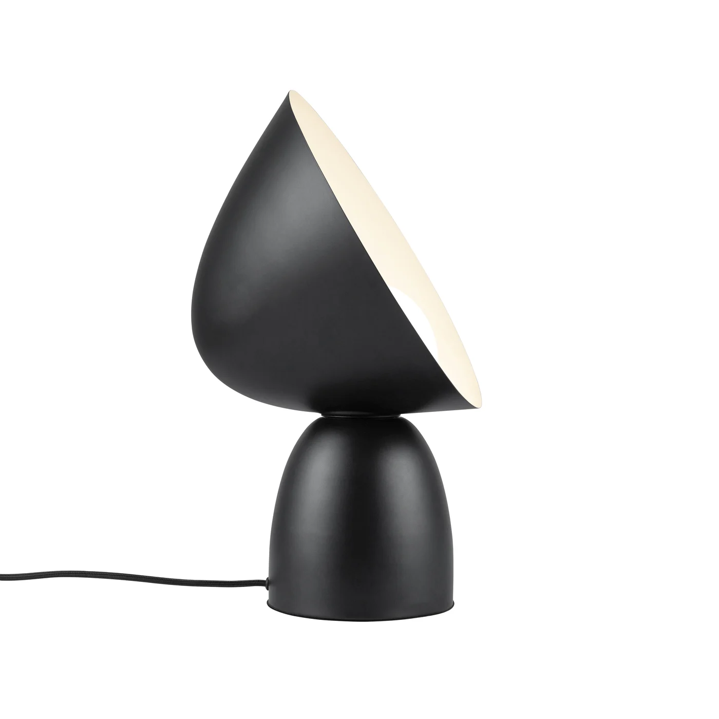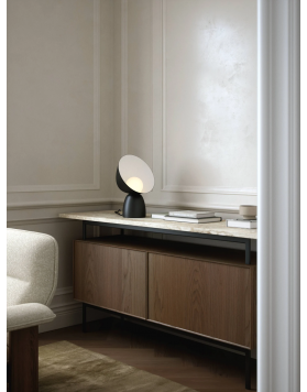 La lámpara de mesa Hello de la diseñadora danesa Charlotte Høncke tiene un lenguaje de diseño alegre y acogedor y una silueta clásica y orgánica. La pantalla grande abraza maravillosamente la cúpula de vidrio blanco opalino e incluso se puede girar completamente para obtener una mezcla divertida entre luz directa e indirecta.
