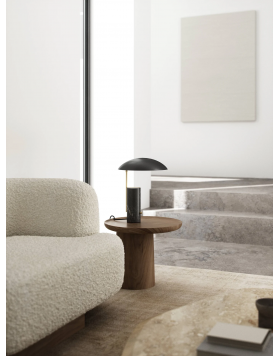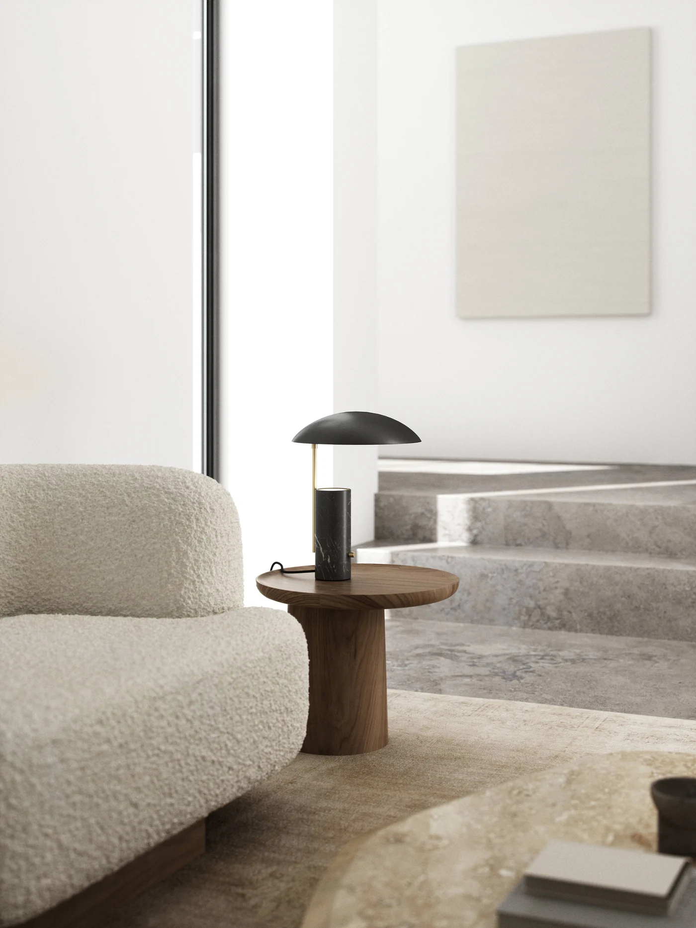 Mademoiselles, del estudio de diseño danés Mavro/Lefevre, tiene una expresión de diseño divertida y desenfadada en la que la pantalla redonda de gran tamaño se equilibra con la sólida base de mármol. La luz se refleja hacia arriba en la parte inferior de la pantalla, creando un ambiente suave e indirecto. El mármol es un material natural único y, por lo tanto, las líneas, los colores y los patrones pueden variar de una lámpara a otra. Esto es parte del encanto de trabajar con materiales naturales.