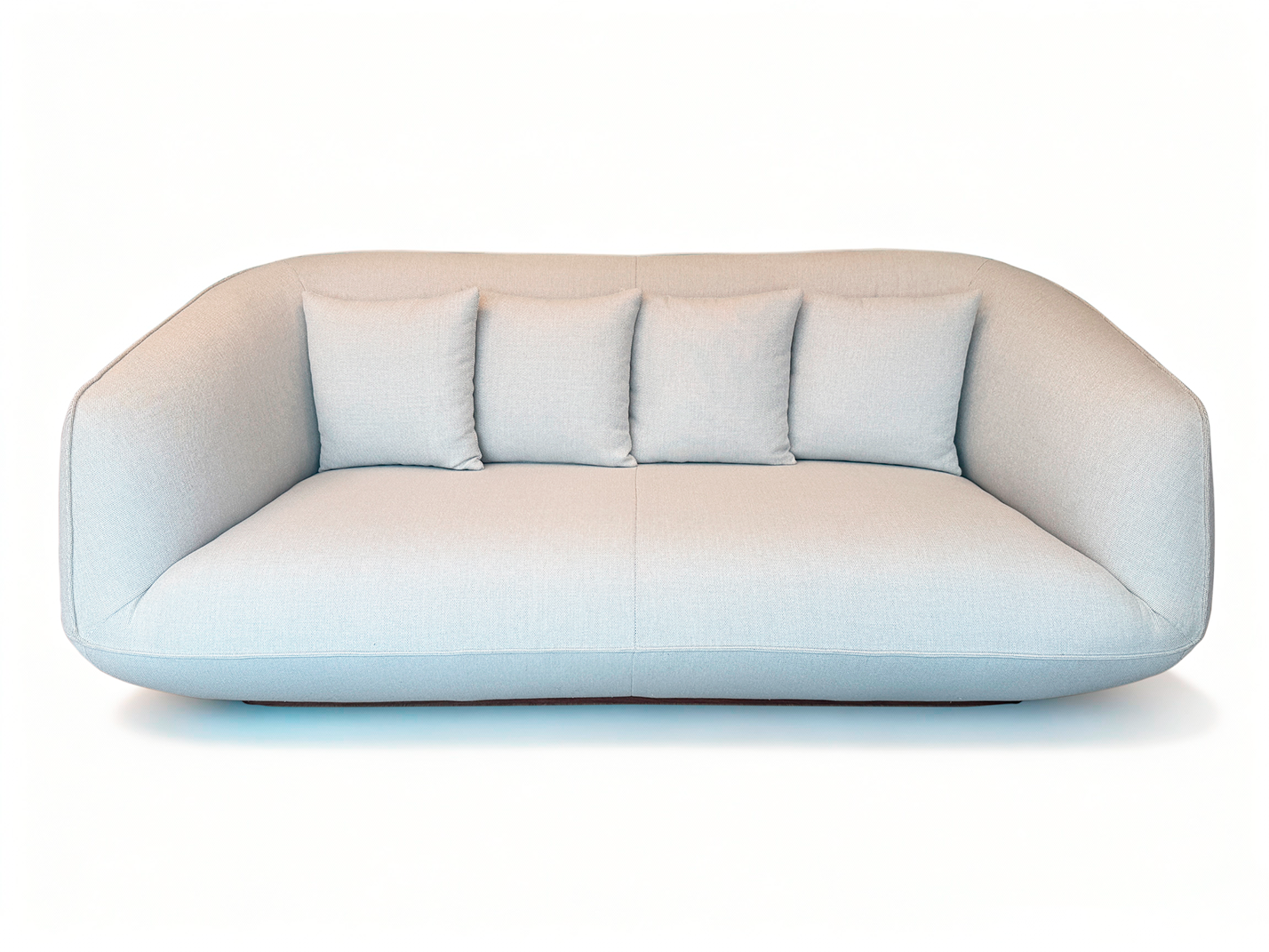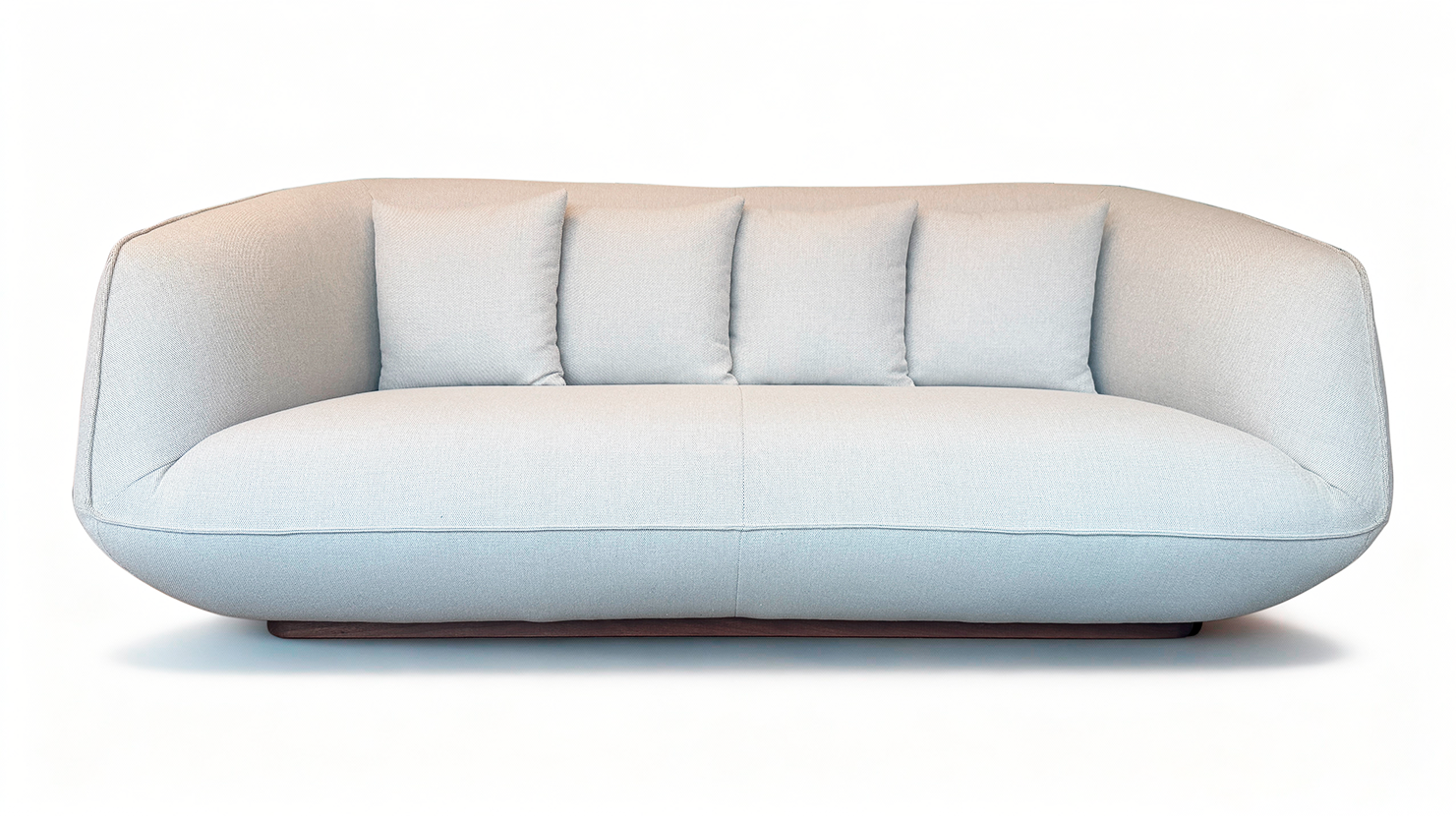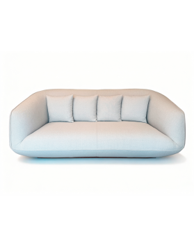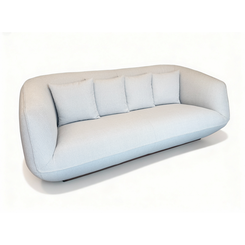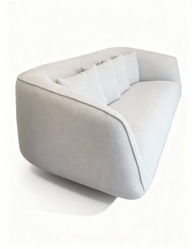 Sofá de diseño contemporáneo con formas envolventes y líneas suaves que aportan elegancia y confort. Su asiento amplio y continuo, combinado con respaldo y brazos curvos, ofrece una experiencia de descanso excepcional. Un modelo sofisticado y versátil, ideal para salones modernos que buscan estilo sin renunciar a la comodidad.