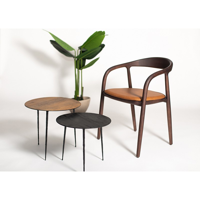La estructura de la de la foto viene en madera maciza de fresno teñida nogal y tapizado en eco-piel. Otros acabados consultar.