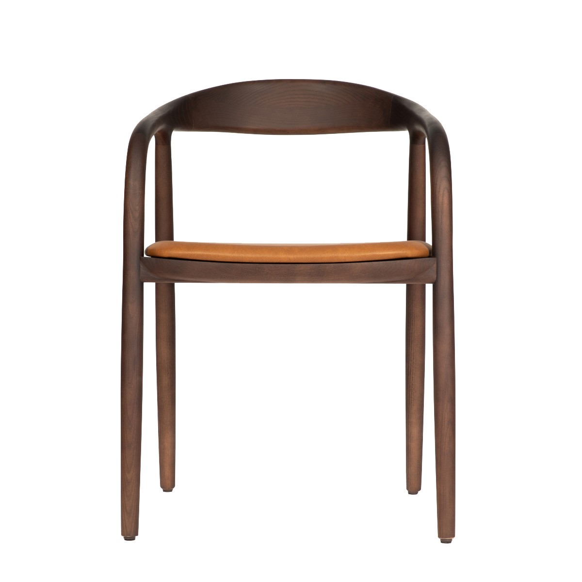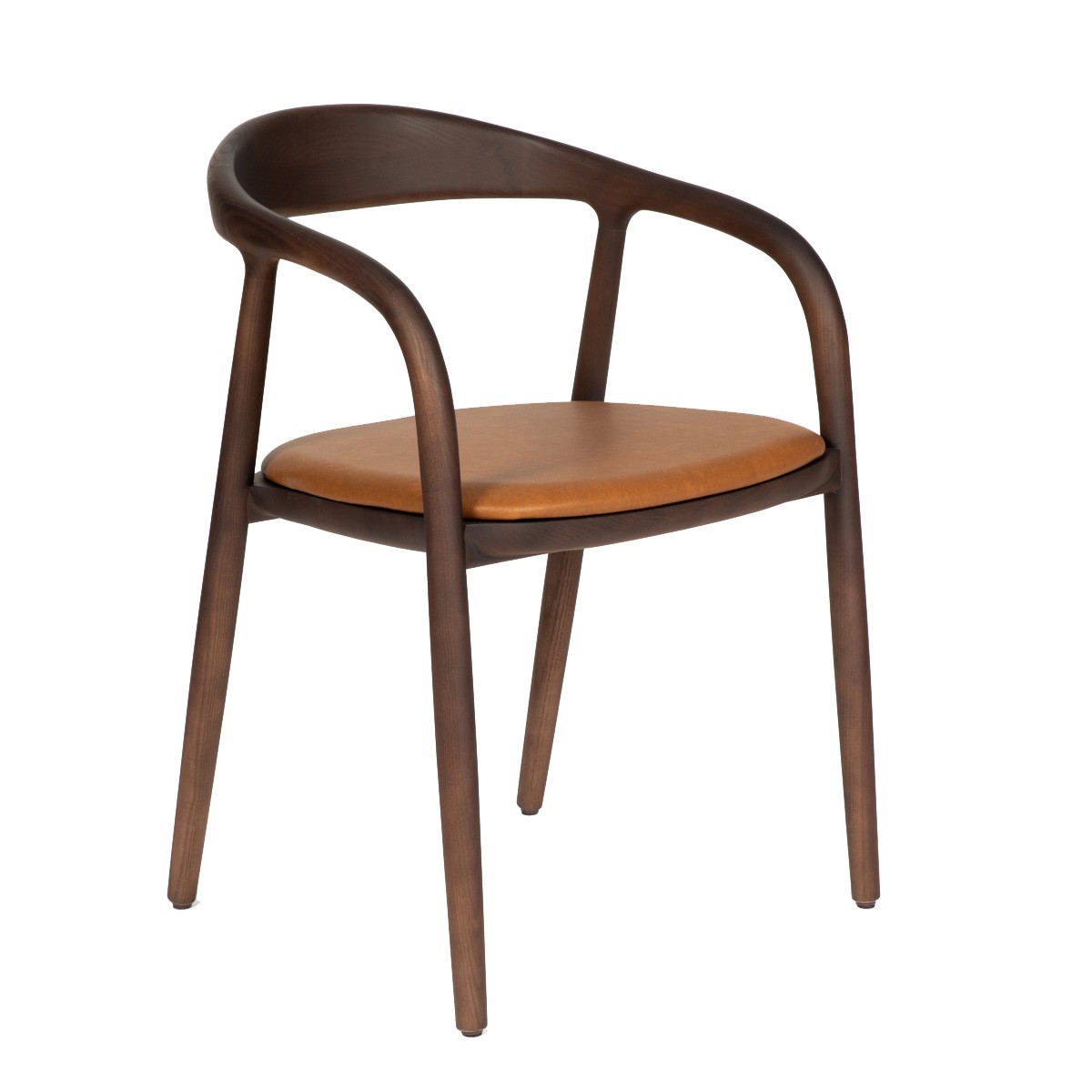 Sillón con brazos de estructura de madera de fresno. En las fotografías se muestra teñida en nogal oscuro, pero se puede elegir. Así mismo el tapizado representado es en ecopiel, pero existen otras posibilidades. No dudes en consultarnos a través de info@esturri.com o en el 981 24 20 29