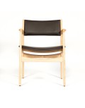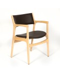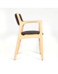 Sillón con brazos de estructura de madera de fresno, tapizada en diferentes opciones de muestrario, consultanos. Personalizable en distintos tonos de madera y tapizado a escoger. Impresionante construcción artesanal cuidando todos los detalles de construcción. Resistencia para uso intensivo en hostelería y gran comodidad gracias a su buena ergonomía.