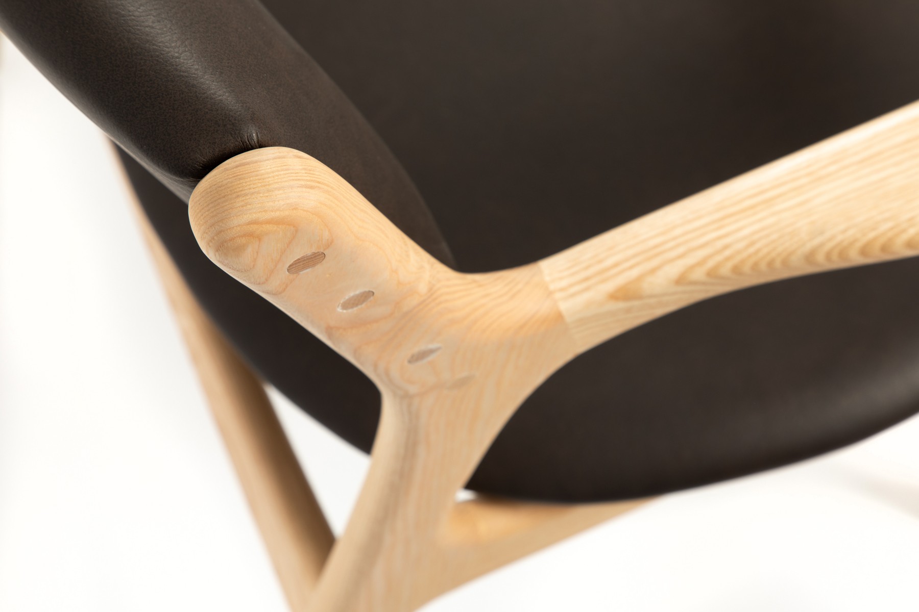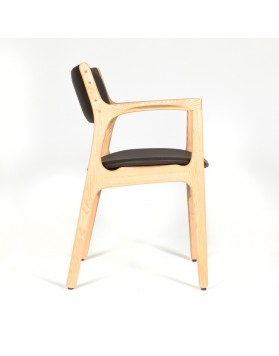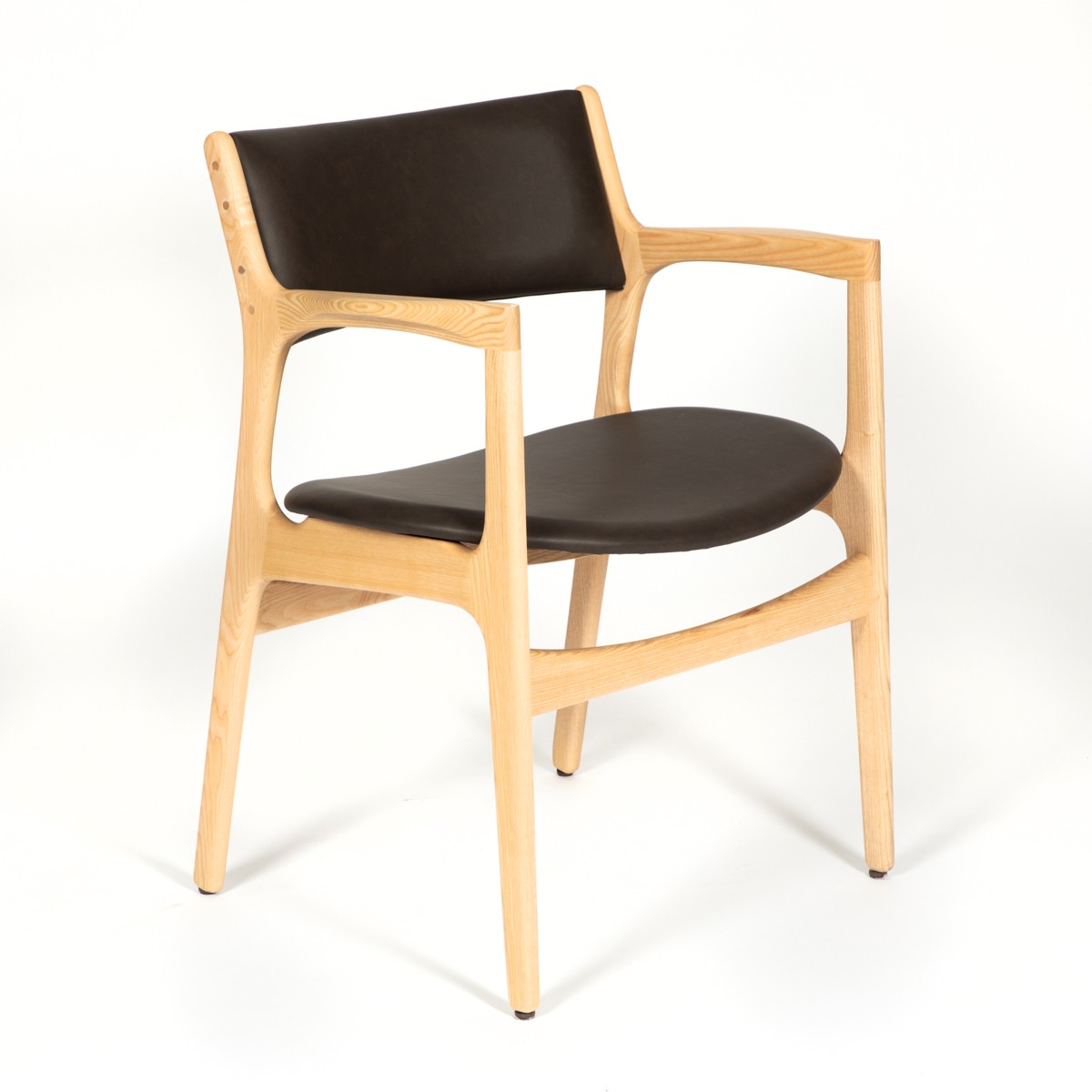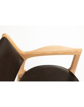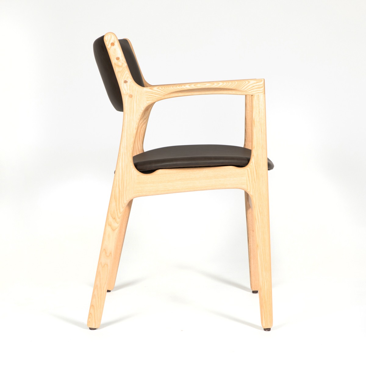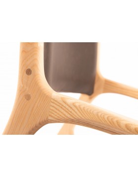 Sillón fabricado en madera de madera maciza de fresno con asiento y respaldo tapizado. Diseño de inspiración nórdica y fabricación artesanal, una combinación perfecta para personalizar tu pieza en el acabado que tu quieras. El precio indicado es ecopiel.