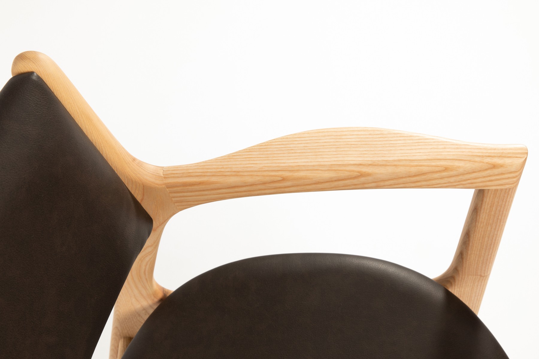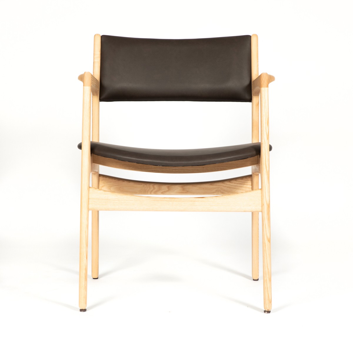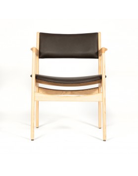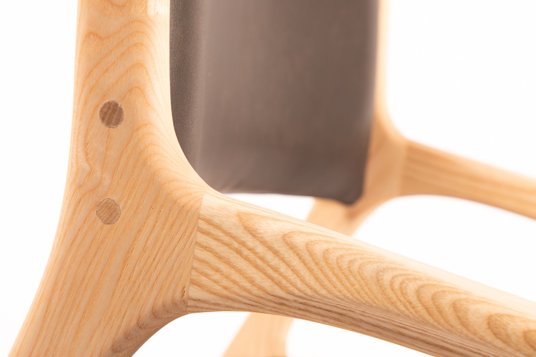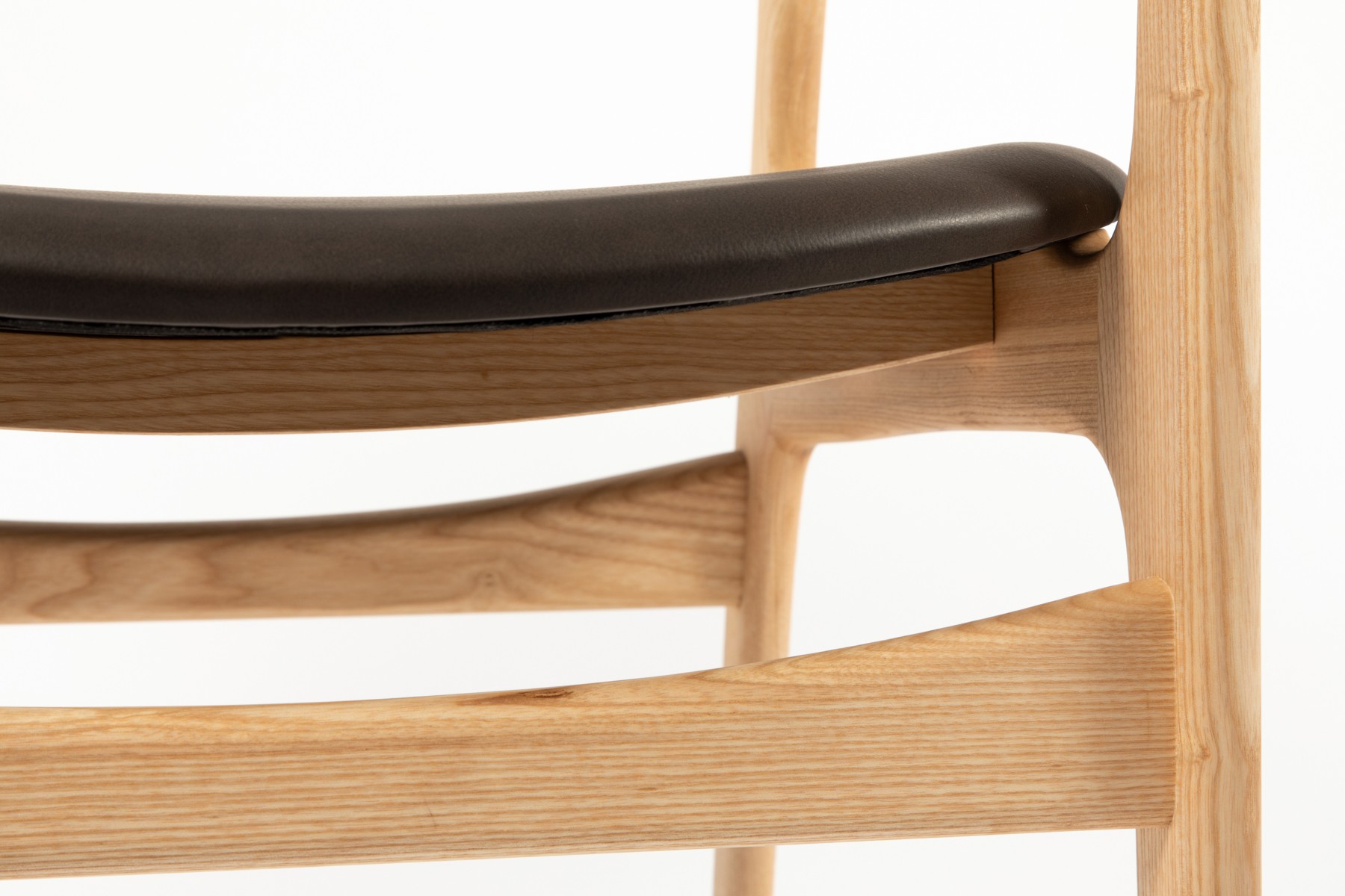 Sillón fabricado en madera de madera maciza de fresno con asiento y respaldo tapizado. Diseño de inspiración nórdica y fabricación artesanal, una combinación perfecta para personalizar tu pieza en el acabado que tu quieras. El precio indicado es ecopiel.