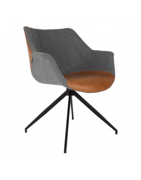 Un sillón elegante y versátil que fusiona diseño retro y funcionalidad moderna. Su estructura de acero negro y su tapizado en tejido y PU-cuero buscan ofrecer un acento cálido y sofisticado al salón, comedor u oficina. Compacto pero cómodo, con carga máxima de 100 kg.