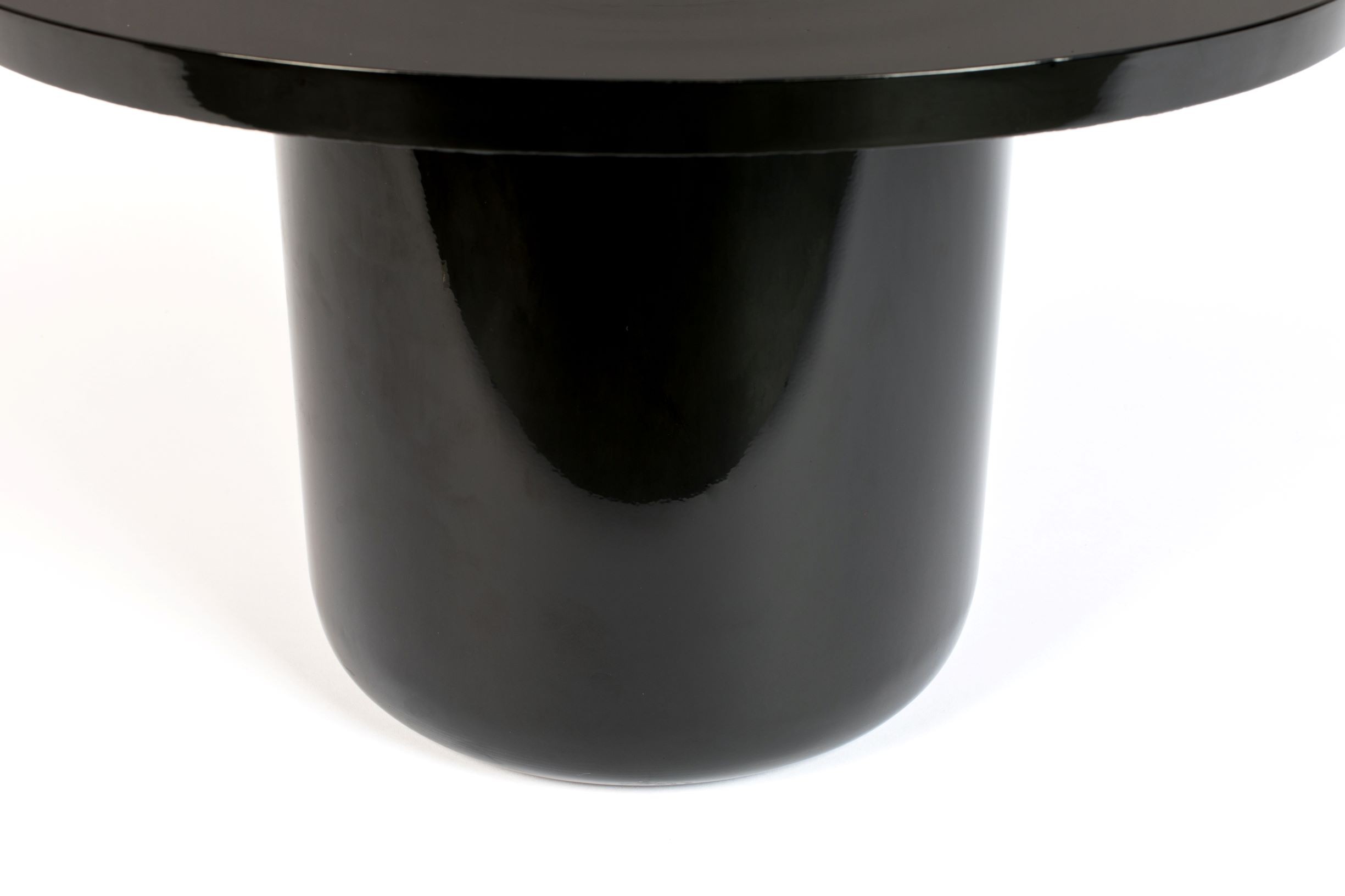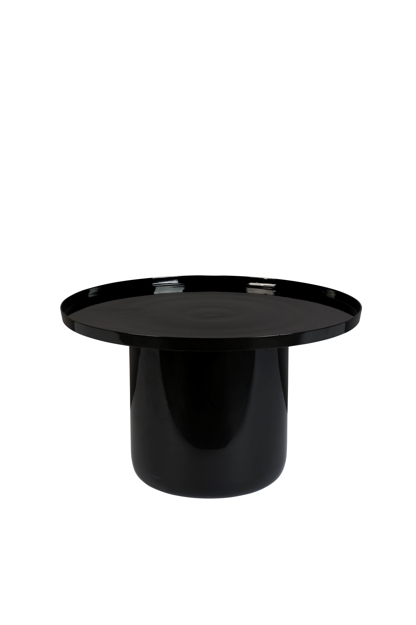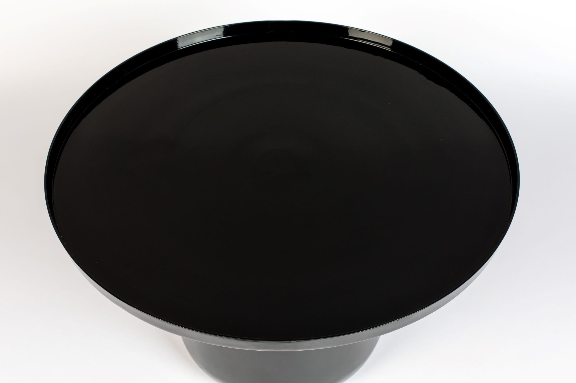 La mesa de centro y la mesa auxiliar Shiny Bomb lucen brillantes. Esta belleza negra está hecha de metal esmaltado y presenta un pie ancho y resistente.