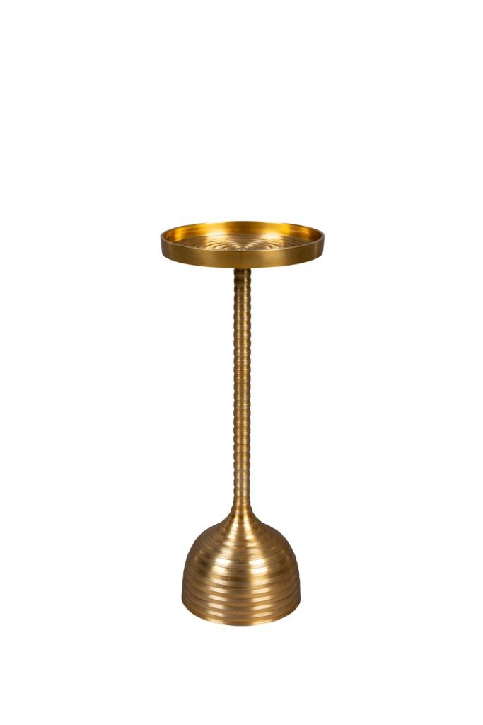 La mesa auxiliar Turner es una preciosa mesa auxiliar totalmente de latón que forma un pedestal para cualquier cosa que pongas sobre ella. Este efecto se ve reforzado por la elaborada decoración con círculos en la base y el tablero de la mesa. Incluso una taza de té se convierte en una obra de arte si se coloca sobre la mesa Turner.