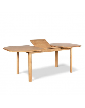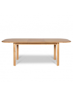 Mesa de comedor extensible Double en roble natural con diseño nórdico. Destaca por su sólida pata doble, que aporta estabilidad y personalidad, y por su mecanismo de apertura tipo mariposa integrado en la encimera, que permite ampliar la mesa de 160 cm a 210 cm de forma sencilla para recibir más invitados.