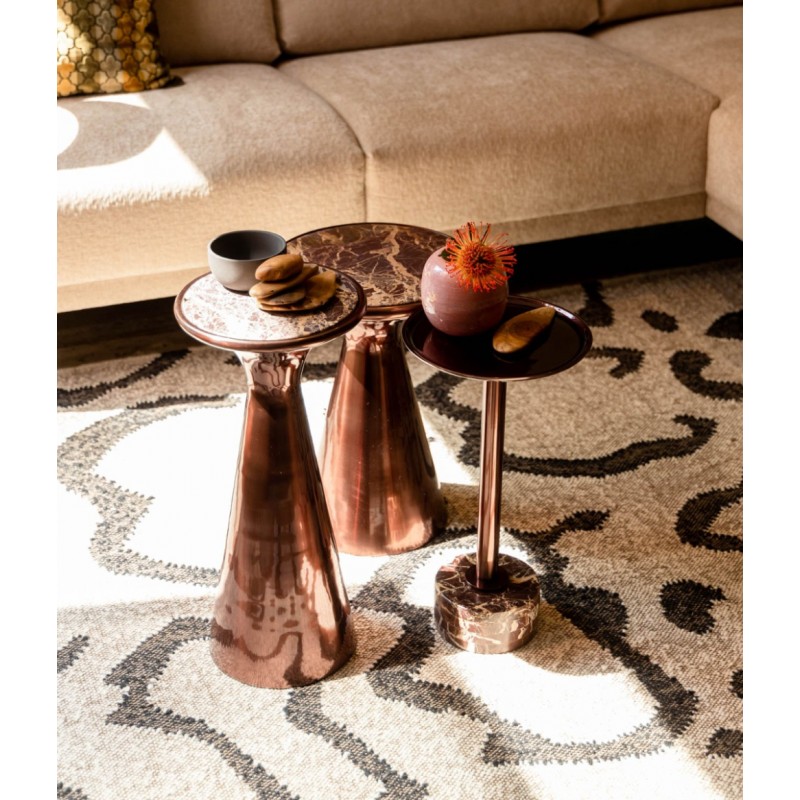 La mesa Pose fabricada con materiales de alta calidad y elaborada a mano, muestra pequeñas imperfecciones que realzan su carácter artesanal y su encanto vintage.